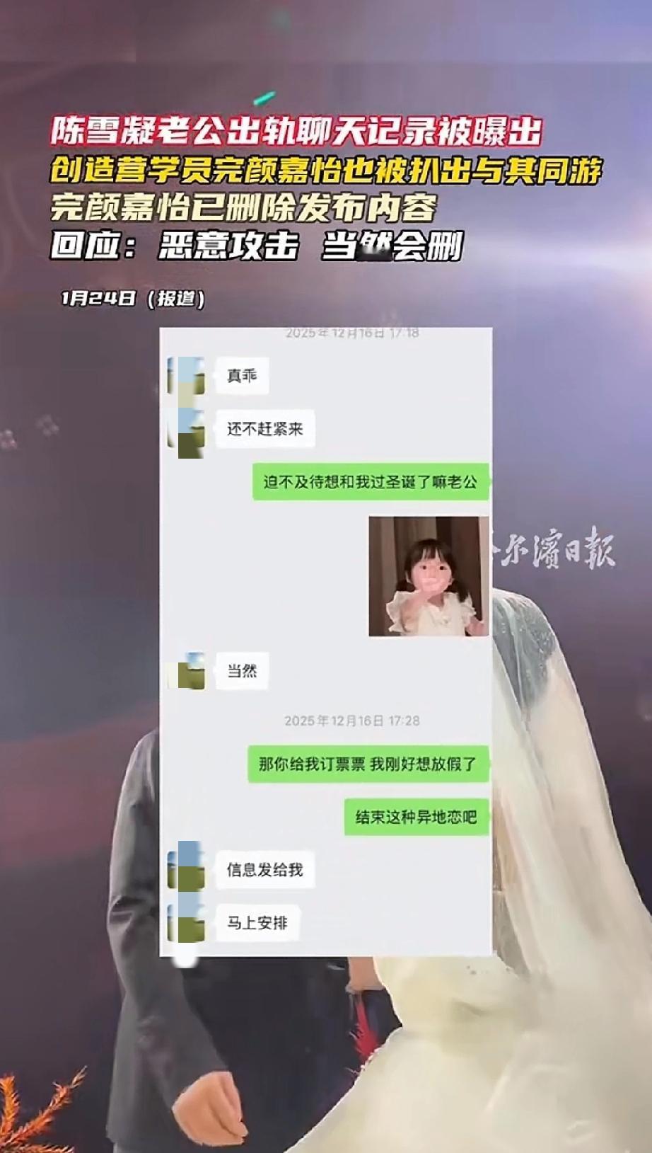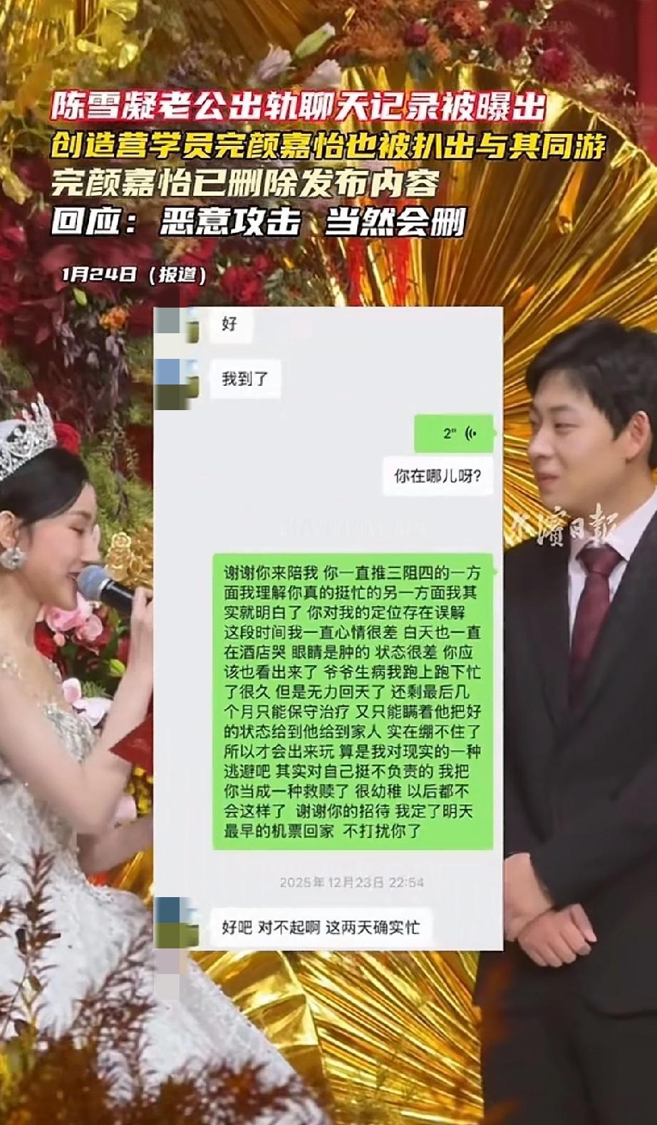 这回真的是绿色的,满屏的绿色! 陈雪凝老公被爆出轨,领证前一天晚上被爆和其他女生酒店开房。讽刺的是,前几天刚刚因为结婚冲上热搜,她婚礼上还深情告白老公。 陈雪凝是谁? 她是一个歌红人不红的00后女歌手。 代表作是2019年爆火的《绿色》《你的酒馆对我打了烊》。