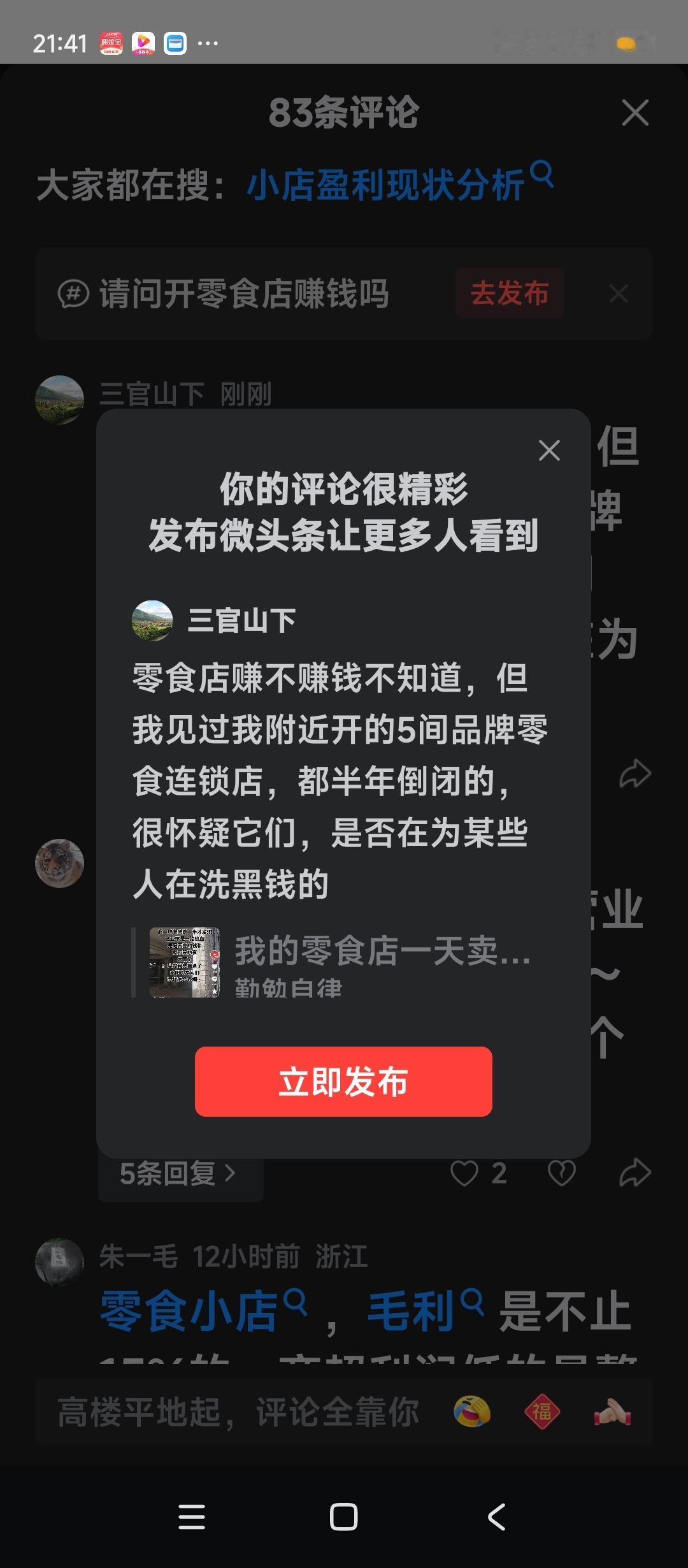 零食店赚不赚钱不知道,但我见过我附近开的5间品牌零食连锁店,都半年倒闭的,很怀疑它们,是否在为某些人在洗黑钱的。 因为这些店都是距离不到一公里的地方开,而且是越开越多的,我楼下附近开了4个月的,已经关门谢客了!