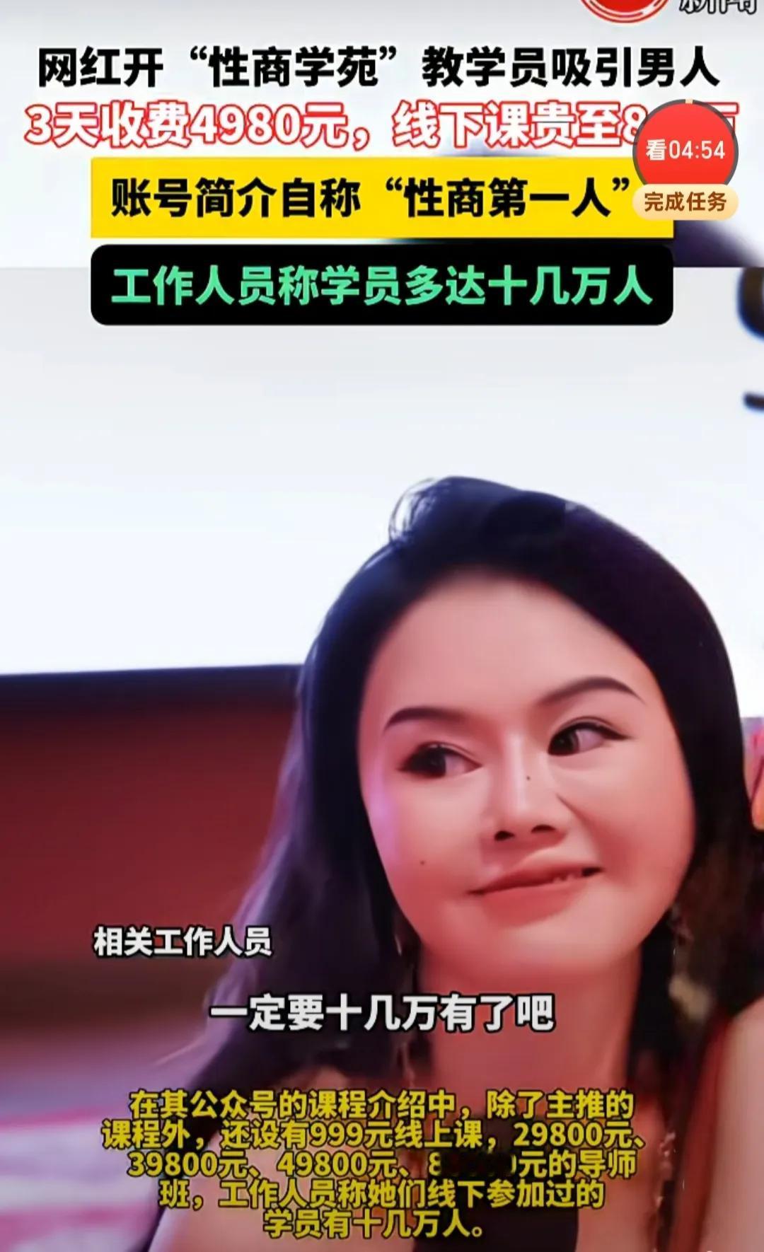网红“性商学苑”割韭菜被骂上热搜,教女人“勾男人”到底合不合法? 这个自称“性商第一人”的网红周媛搞的“性商学苑”,最近直接把网友的三观震碎了——3天线下课收4980元,最贵的导师班卖到8.8万,还宣称学员十几万,主打一个割韭菜割得明明白白,而它的合法性和争议点,咱们掰开揉碎了说。 首先,从法律层面看,这事儿目前没直接触碰“卖淫嫖娼”这类红线,但已经在违规边缘疯狂试探。它的课程内容主打“用眼神、肢体语言吸引男人”,本质是把两性关系工具化,甚至有物化女性的倾向,虽然没露骨的色情内容,但这种擦边球式的“情感PUA”,已经涉嫌违反《广告法》和《消费者权益保护法》。 更关键的是,它的商业模式存在明显的欺诈嫌疑:课程宣称能“让男人主动为你花钱”,但没有任何科学依据,属于夸大宣传;收费从几百到几万不等,却没有明确的课程标准和效果承诺,本质是利用女性的情感焦虑收割智商税。学员交了钱,可能啥有用的东西都没学到,想退款还被各种推诿,不少人已经向市场监管部门投诉。 被全网质疑的核心原因,还在于它传递的价值观歪到离谱。它把女性的价值绑定在“吸引男性”上,教的不是健康的两性相处,而是投机取巧的“钓凯子”技巧,不仅违背了平等的婚恋观,还容易让女性陷入情感陷阱。更讽刺的是,所谓“性商第一人”的头衔根本没有任何专业资质背书,连心理学、社会学的相关证书都拿不出来,纯属自我包装。 虽然目前还没被直接封禁,但这类擦边球项目早晚会被监管盯上。市场监管部门已经开始核查它的收费和宣传合规性,一旦发现虚假宣传或诈骗行为,面临的就是罚款甚至停业整顿。说到底,靠贩卖焦虑和歪三观赚钱的生意,注定走不远,想提升情感能力,还是得靠正规的心理辅导和自我成长,别被这种“割韭菜”的套路骗了。