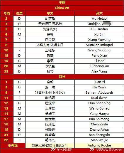 加油!U23国足决赛首发名单来了