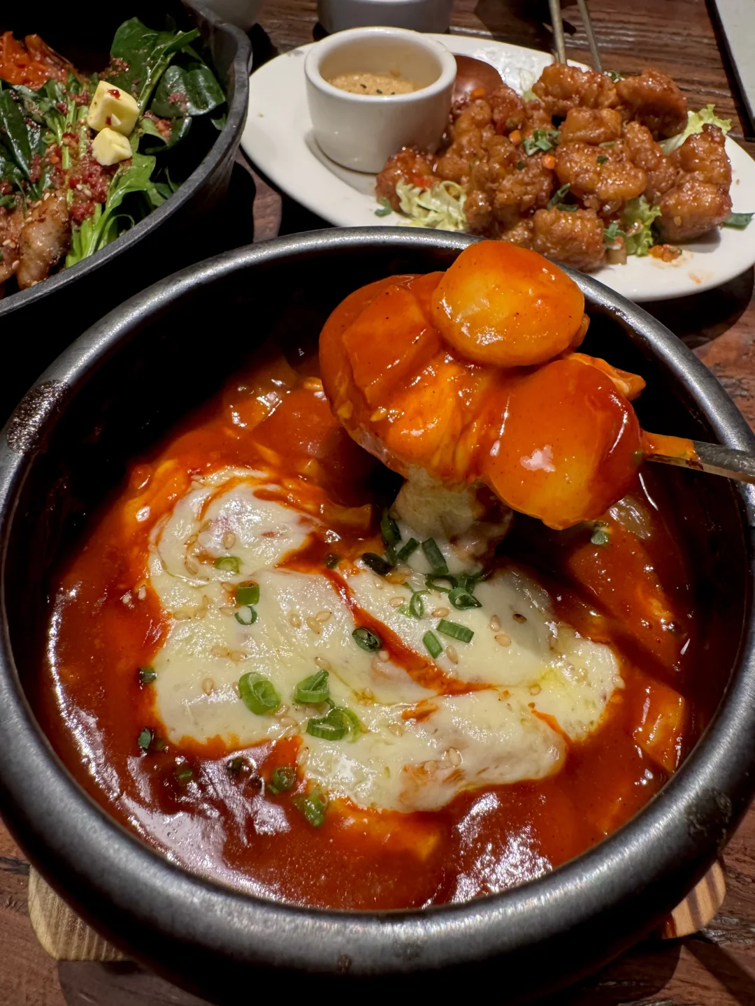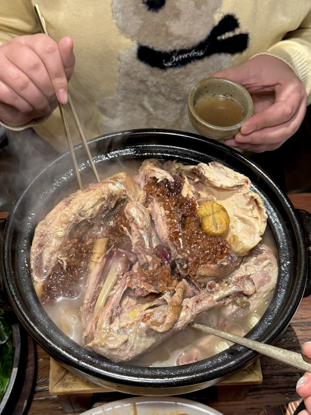 杭州韩料巨头!!氛围可好了,而且宠物友好~ 韩式普洱糯米参鸡汤!!热乎乎的吼吼喝!!! 招牌火腿泡菜饭,刚做好就被一扫而空🤤 蒜香干烹鸡、JEJU银鱼酱铁锅猪颈肉、提拉米苏… 经常和朋友来这里聚餐,都是反复会点的~