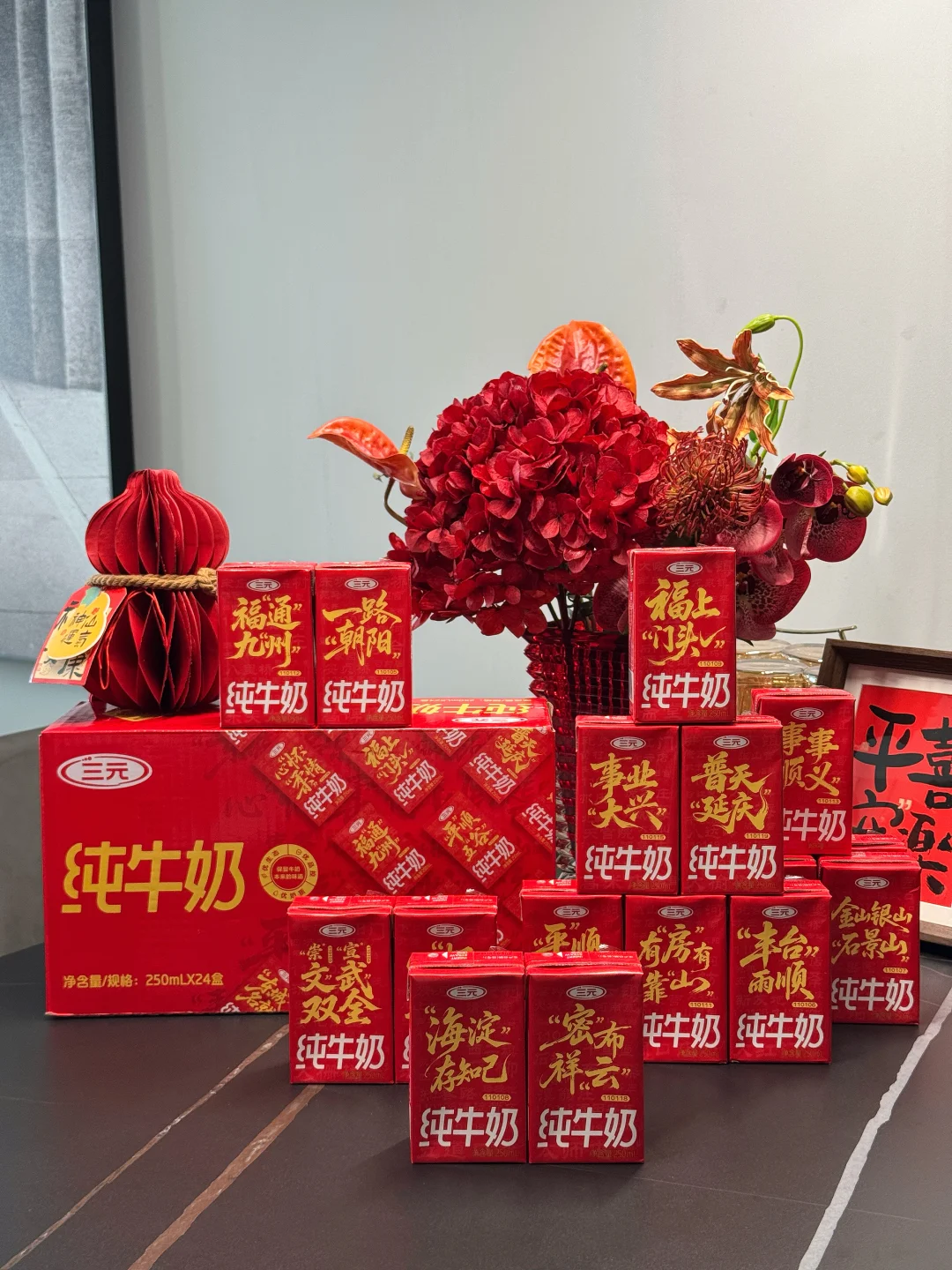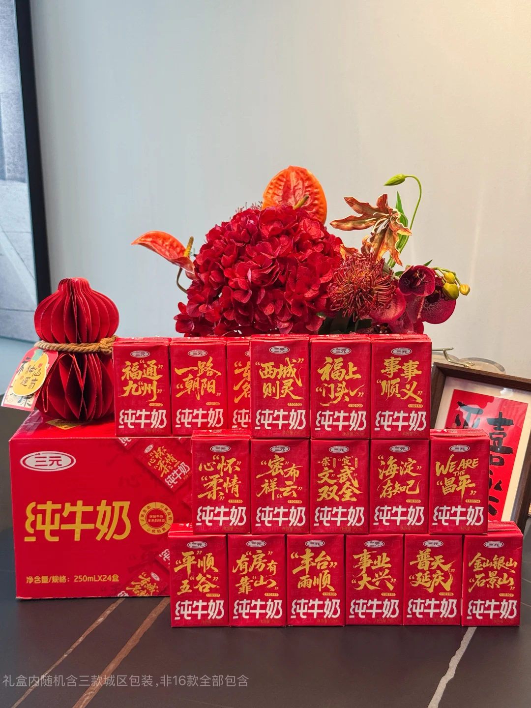这次三元春节限定包装是以北京16城区的名字谐音1句祝福成语,红色喜庆包装 一拿到手就感受到了满满的北京年味喜庆极了,“有房有靠山”(房山)戳中北京人安家的踏实感,“东城名就”(东城)祝福新的一年学业、事业都能取得圆满成就,还有机会开出 “崇文”“宣武” 隐藏款,把老北京的文脉武韵装进奶盒。开饭前全家一起拆礼盒,看看谁能抽到隐藏款,一人一杯喝的是团圆的滋味,更是新年的好彩头~新的一年,和家人一起,把日子过得有滋有味!