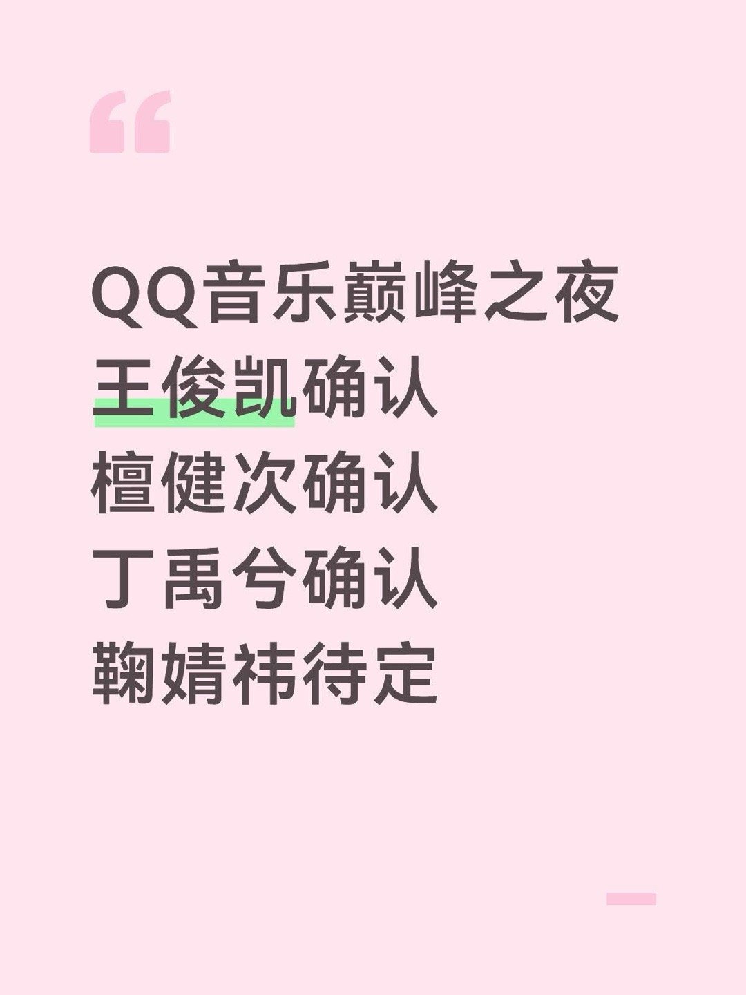 QQ音乐巅峰之夜王俊凯确认檀健次确认丁禹兮确认鞠婧祎待定