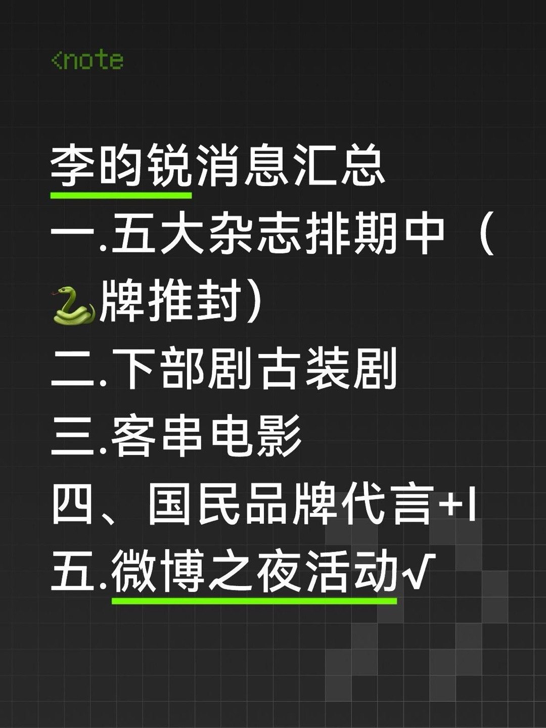 李昀锐消息汇总一.五大杂志排期中(🐍牌推封)二.下部剧古装剧三.客串电影四、国民品牌代言+I五.微博之夜活动李昀锐|