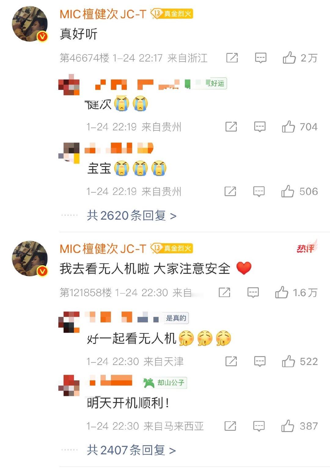檀健次空降后援会直播间檀健次空降后援会直播间表白粉丝 1月24日,空降直播间,和粉丝一起看无人机应援,还在线表白粉丝称:“我也爱你们”!网友:“檀健次和小炭火就这么双向奔赴!”檀健次后援会直播
