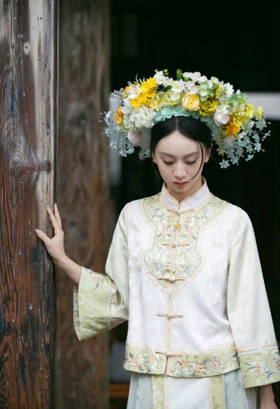 叶一茜森碟簪花照