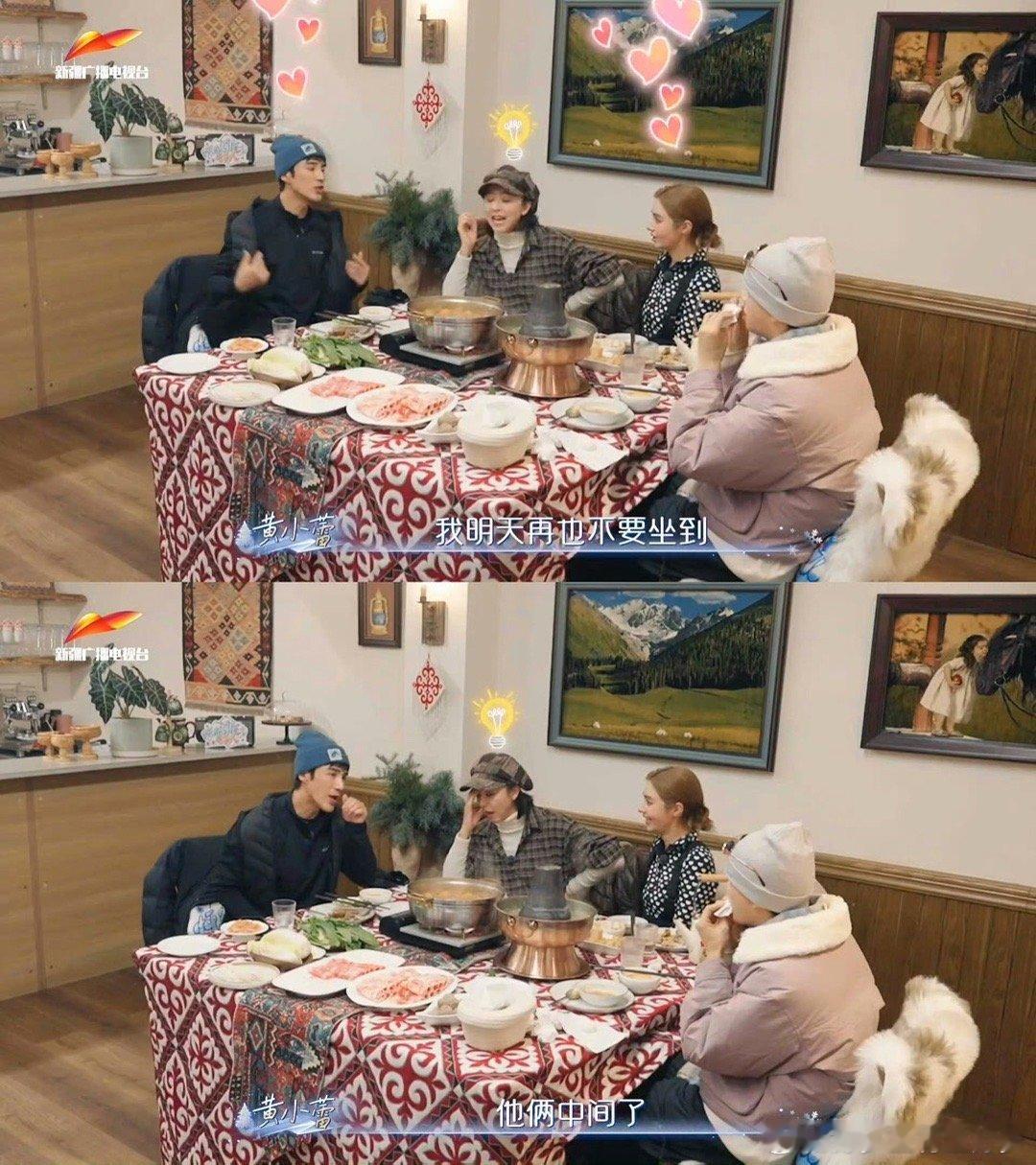黄小蕾成内娱真夫妻的电灯泡了 谁懂黄小蕾的可爱!和姜潮麦迪娜吃饭,硬坐俩夫妻中间当电灯泡,不用动筷就被狗粮喂饱,画面太有梗