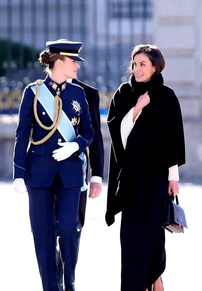 西班牙王后莱蒂齐亚,这女人真不简单。 穿衣服从来不出错,简直就是行走的王室范本。 她厉害的地方在于,穿得好看还显得聪明。旧衣服也能穿出新花样,一件Mango西装反复穿,这不就是告诉大家,王室也接地气嘛。有时候还穿女儿的衣服,这母女关系看着就挺好。 说白了,她的穿搭就是她的工作服,每一件都有它的用处和说法。 但现在,大家的眼光越来越被她女儿吸引了。 这位未来的女王,莱昂诺尔公主,真是一天一个样。 葬礼上扶着奶奶,全程安慰,小姑娘沉稳得不像话。 穿上军装,三年军事训练不是闹着玩的,整个人的气质都硬朗了,自信又从容。 这可是西班牙快200年来的头一位女王,架势必须得有。
