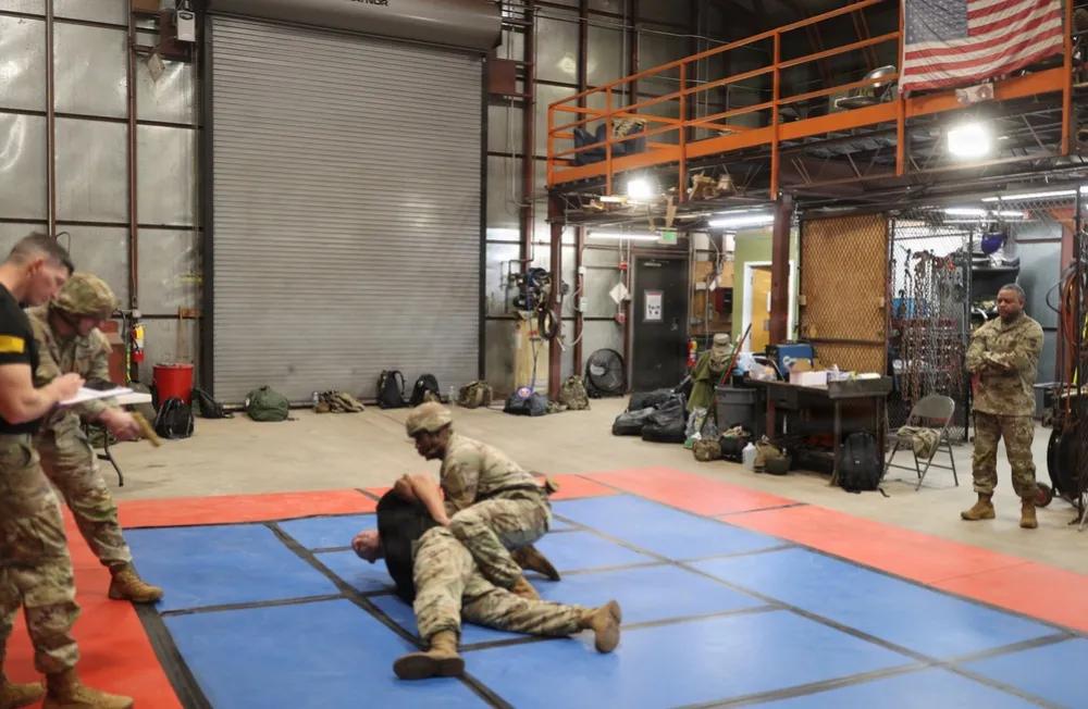 1月23日,美国马萨诸塞州德文斯,作为提升美军联合作战部队的努力之一,德文斯预备役部队训练区的工作人员建造了一台便携式室内训练工具,以加强该地区现代陆军格斗训练项目。 战术演示在德文斯预备役部队训练区拉开了第99战备师现代陆军格斗项目锦标赛的序幕。