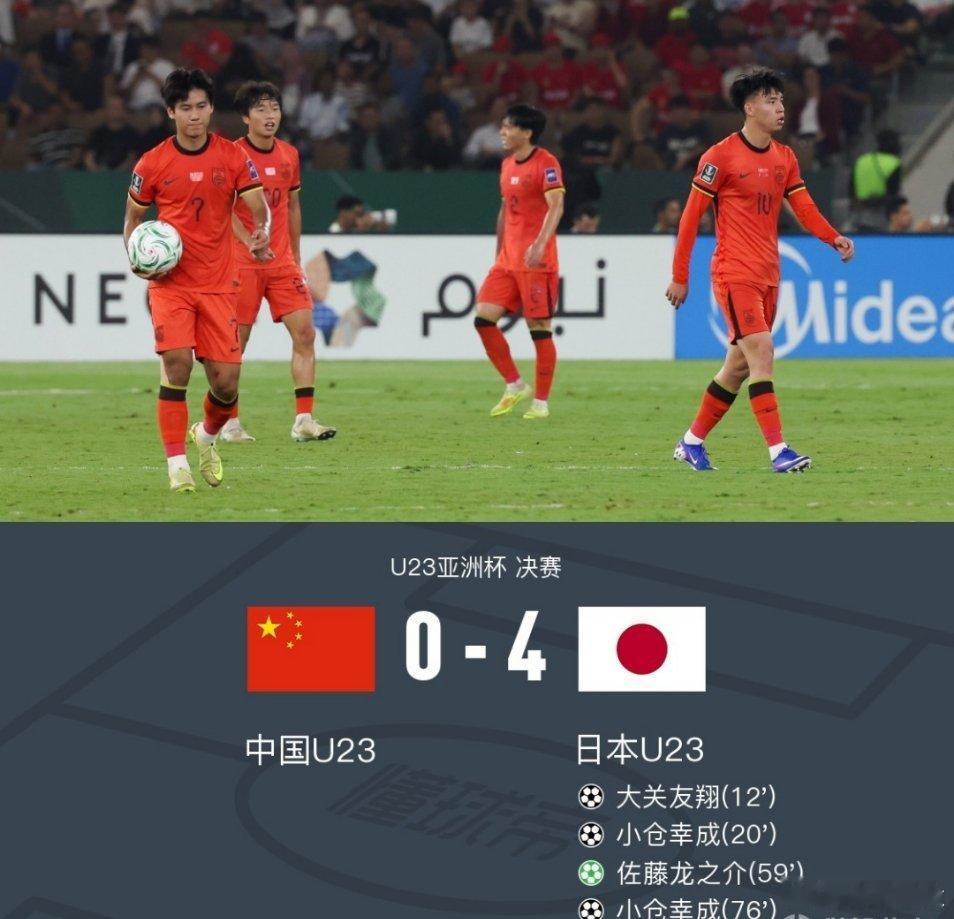 中国0比4不敌日本无缘u23亚洲杯冠军中国u23vs日本u23 中国0-4日本获U23亚洲杯亚军,杨希进球被吹,李昊多次扑救。U23亚洲杯决赛,日本U23对阵中国U23。日本队大关友翔、佐藤龙之介分别破门,小仓幸成双响,中国队杨希进球被吹。最终中国0-4日本历史首次夺得U23亚洲杯亚军。