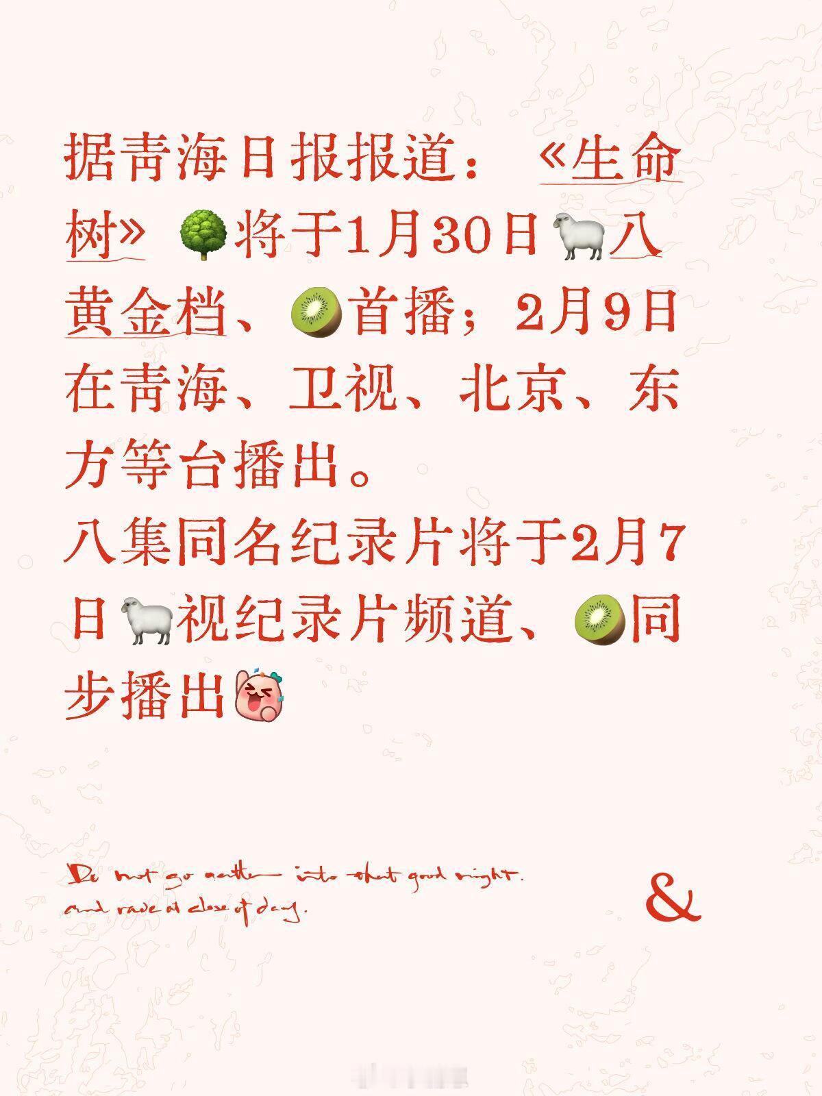 《生命树》多台跟播!纪录片时间确定!杨紫‖生命树‖胡歌‖