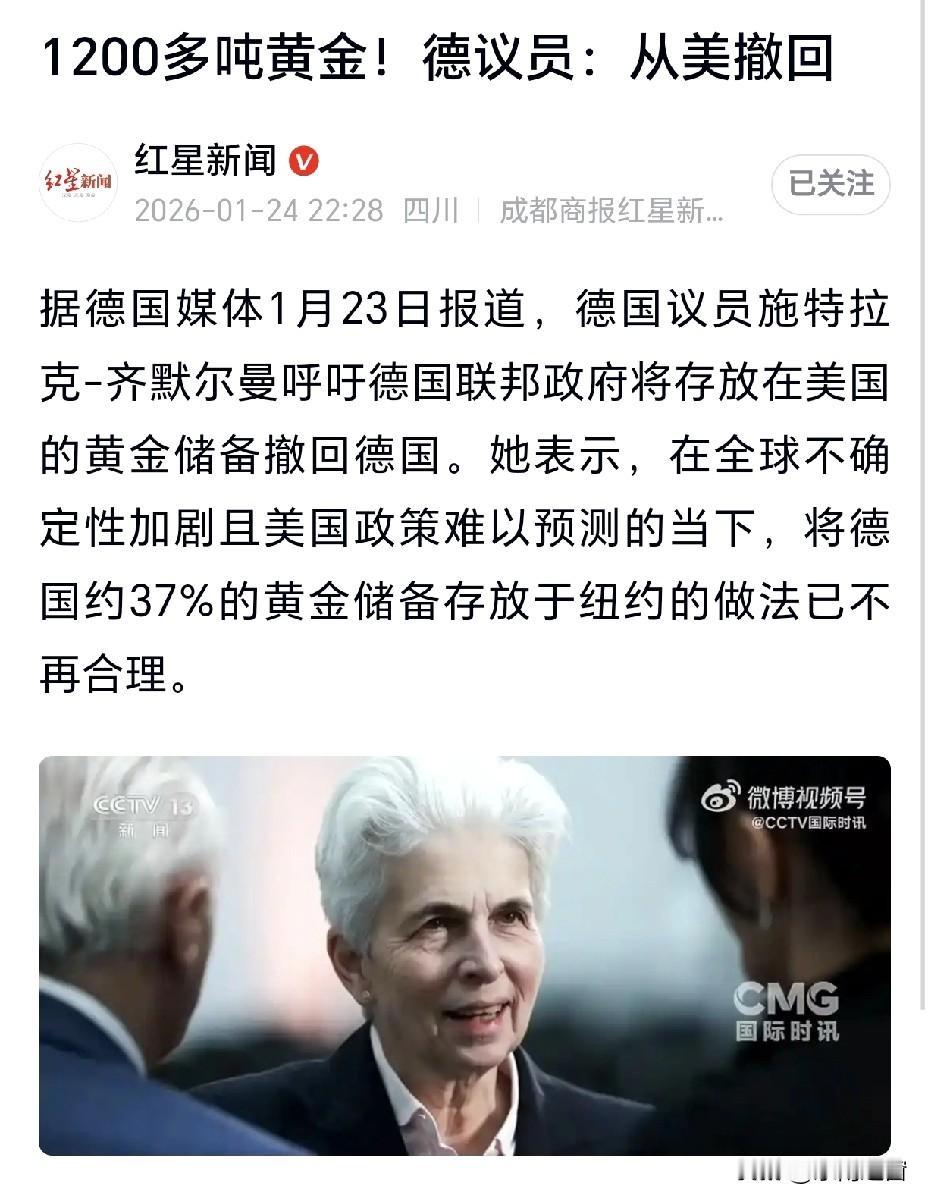 家人们谁懂啊!一千多吨金灿灿的黄金,在纽约联储的地下室里躺了大半个世纪,如今德国议员终于拍案而起:赶紧把咱家的宝贝疙瘩运回来!这可不是小题大做,而是揣着明白装糊涂的德国,终于看透了美国的“信用套路”。 话说当年德国把黄金存去美英,纯属被逼无奈的“权宜之计”。二战后西德刚从废墟里爬起来,隔壁苏联的钢铁洪流虎视眈眈,本土金库那就是个摆设,一颗炮弹过来就得家底清空。再加上布雷顿森林体系把美元捧成了“黄金替身”,纽约、伦敦又是全球黄金交易的“大卖场”,把黄金搁在这儿,交易时不用吭哧吭哧运金条,直接账本上划拉几笔就行。更别提当时还得靠美国的马歇尔计划“输血”重建,人家伸手帮你,你不得把家底押点在人家那儿表表忠心?说白了,这就是冷战时期的“保命操作”,把黄金存盟友家,总比被敌人一锅端强。 可风水轮流转,当年的“安全保险箱”,现在成了“定时炸弹”。看看美国这几年的操作:印钞机开足马力狂印美元,债务高得能绕地球好几圈,政策变脸比翻书还快。更狠的是,俄罗斯的海外资产说冻就冻,这可是打破了“资产神圣不可侵犯”的规矩。德国议员心里门儿清:今天能冻俄罗斯的,明天就能冻德国的!这1236吨黄金,价值上千亿欧元,那是德国的压舱石,是老百姓的定心丸,哪能继续搁在一个喜怒无常的“债主”家里? 更有意思的是,德国其实早就悄悄“搬家”了。从2013年开始,就分批把黄金运回法兰克福,现在还剩37%在纽约,13%在伦敦。这次议员高调喊话,不过是把窗户纸捅破了。毕竟现在的黄金交易,早就不是美英说了算,中国、瑞士的交易中心照样风生水起,犯不着再看美国脸色。再说了,现在的运输和安保技术,运千吨黄金回家,比担心被美国扣下的风险划算多了。 说到底,德国要回的不只是黄金,更是国家金融的主权。这事儿也给全世界提了个醒:别把鸡蛋都搁在美国这个篮子里,毕竟这个篮子,早就破了好几个洞。美国靠着保管各国黄金撑起的金融霸权,也该在这波黄金回流的浪潮里,碎成渣了!