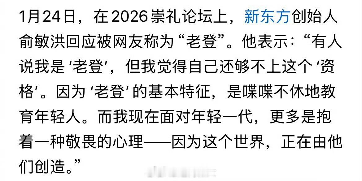 俞敏洪回应被骂老登,自己还不够格,比起教育年轻人更多是抱着敬畏的心理