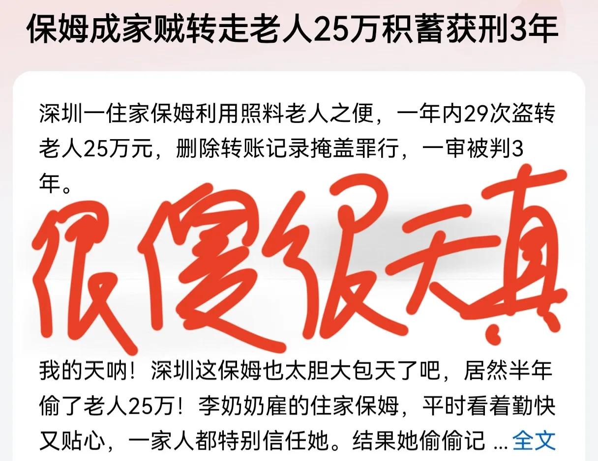 很傻很天真!住家保姆动了歪心思,主家过于信任让她胆子大了,竟然在一年内偷偷转了29次,将老人的25万存款占为己有,但她还是有点无知了,以为删除转账记录就能瞒天过海了,那只是app上的记录,能删得掉资金走向吗? 最终结局大快人心,不但工作没了,还有3年的牢狱之灾,好好的改造吧!