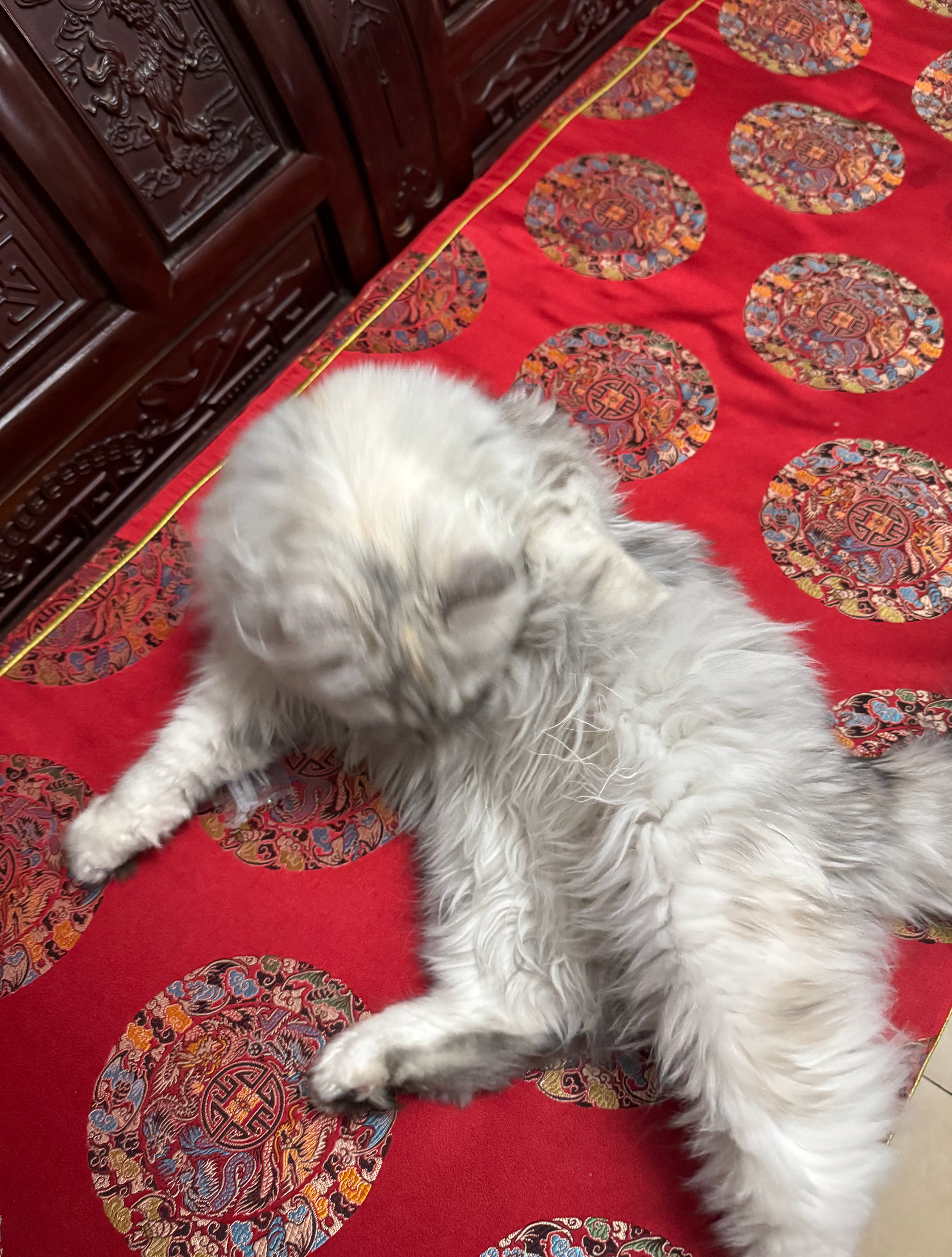 我弟养了一只西伯利亚森林猫🐱昨天回娘家主线任务就是撸它吃完饭我开了个榴莲没有洗手猫猫和我玩的时候突然愣住了然后开始闻自己的屁屁以及梳理屁屁附近的毛我在想它是不是在怀疑自己粑粑粘毛上了给自己梳理干净后还不忘舔我的手眼神里带着嫌弃