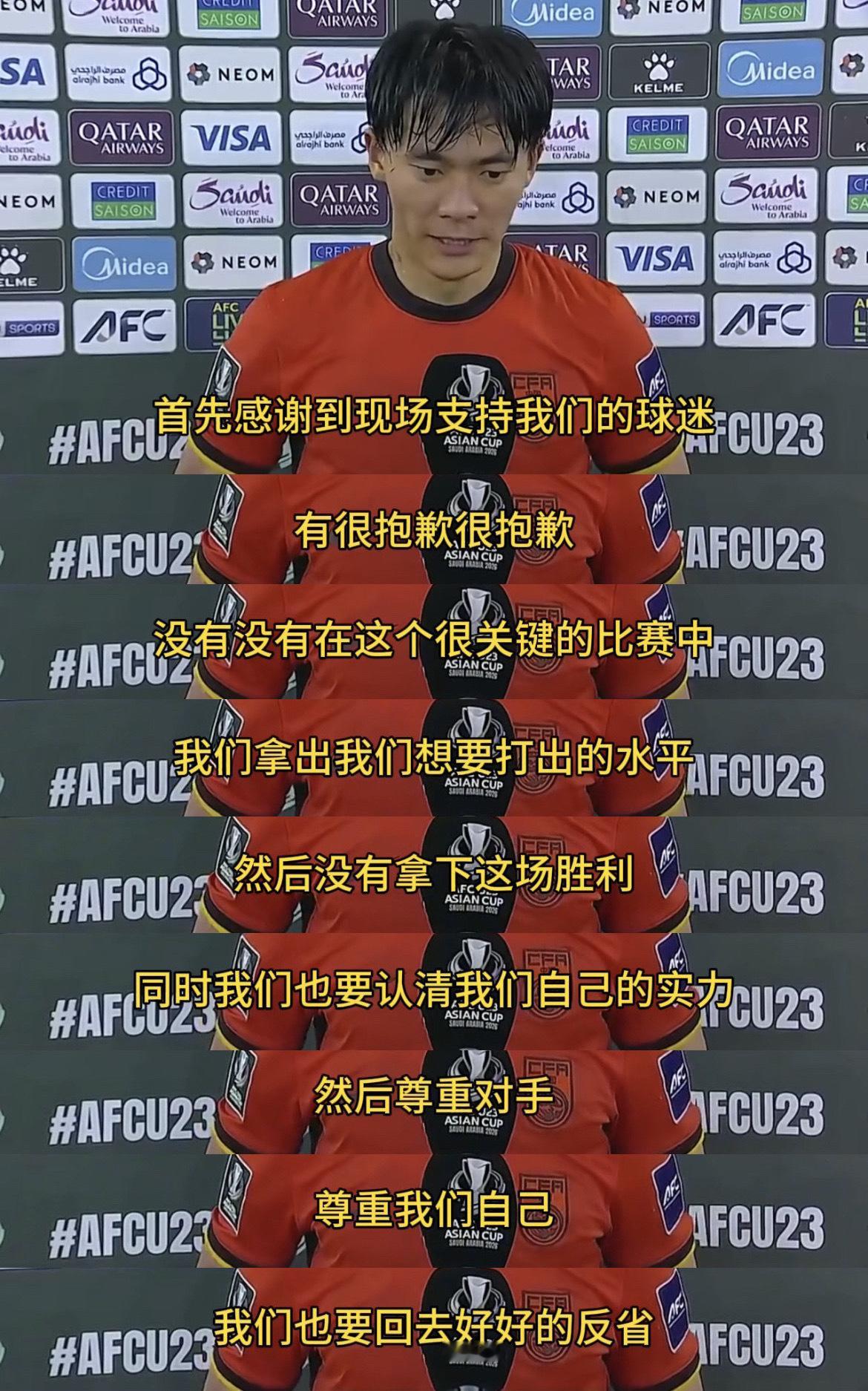 胡荷韬赛后哽咽:很抱歉没有拿下这场胜利,感谢球迷支持U23国足球员向球迷致歉亚军不是终点