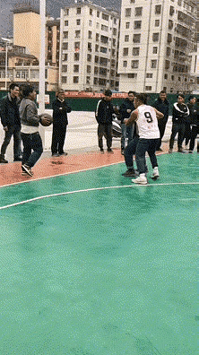 武术篮球。 在9号球员与光膀子球员面前,篮球多余了,有没有球无所谓,一样可以分上下、论高低。 发球的球员也是个人才,还用球去碰一下人,才开始运球进攻,人才啊!