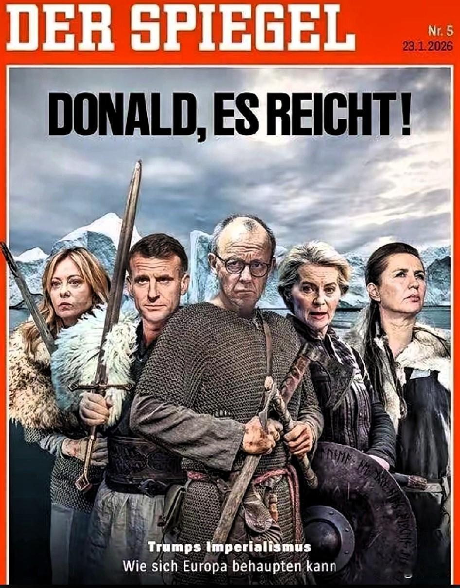 德国《明镜周刊》发图“特朗普,够了”,网友:为美两肋插刀,被美两肋插刀。 德国《明镜周刊》勇气可嘉呀,这图中,五个武士三个是女的,C位的竟然是自家总理默茨。 盎格鲁撒克逊人,维京人的感觉都有,不过就这几个货色,挡不住特朗普的一个屁。 没有一个能打的 ,笑死个人了,意大利,法国,投降不分先后,拿破仑站在金字塔下指点的时候可曾想到过他的法兰西今日竟是美国的一盘菜? 此图一出,自然引发了网友的热议,有人说:为美两肋插刀,被美两肋插刀。 也有人说:用18世纪的剑杀21世纪的盟友,关键是剑还锋利,搞笑。 我回去磨磨刀,你们先上。德国和法国要多担待。 总之,有时想想,欧洲的做派,尤其对中国的种种,恶人自有恶人磨,这是欧洲人应得的。