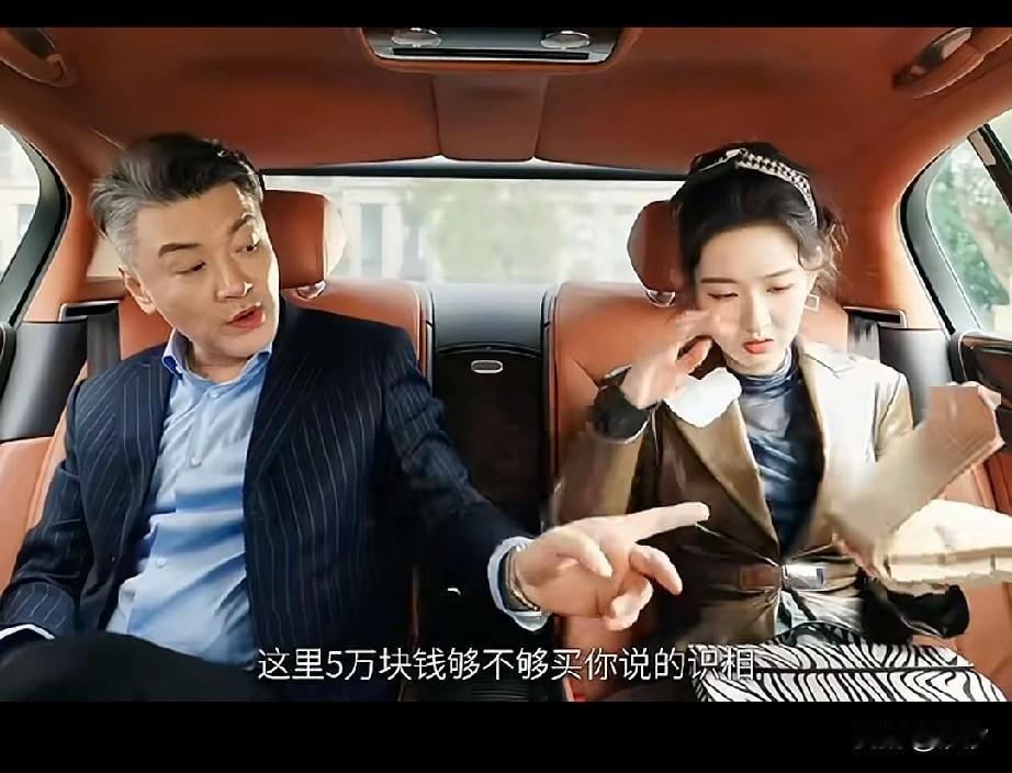刷到一个视频, 一女子和富二代相恋, 他的父亲开着豪车见了该女子, 直接问女孩多少钱可以离开我儿子? 女孩毫不犹豫的回答5000, 富二代的爹直接震惊, 或者说我儿子在你心中就值5000元, 女子表示其实在我心中分文不值! 害怕富二代的爹反悔, 就说你嫌多了,可以商量商量, 这话可把富二代的爹气坏了, 脸上的笑容瞬间没有了, 女孩连忙用高情商化解, 富二代的爹懒得听他解释, 随手扔给他一个档案袋, 档案袋砸在了女子的腿上, 女子感觉好沉, 富二代的爹告诉他这是5万块钱, 这女子好的还想数一数, 结果富二代的爹直接阻止了, 告诉他这不用数了,1分都不会少, 细心的网友发现档案袋里面居然是A5纸!怪不得不让数了,怕穿帮! 这导演也太不用心了! 好歹你使用一下练功钞呀! 女孩开心的笑了, 富二代的爹让她赶紧下车, 还是毫不犹豫就下车了? 所以说两个人的演技都很封神, 富二代的爹不写浮夸, 但是又不失富豪的气质, 该女子很可爱, 完全演出了傻白甜加心机的气质! 大家有看过这部剧吗?