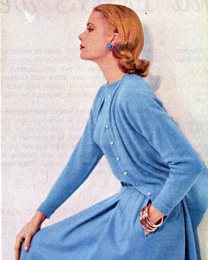 日常冲浪找图发的时候见到了图1,以图搜图发现是摩纳哥王妃格蕾丝在演员时期末期(1955年4月)拍的硬照 这个造型似乎没有其他角度的照片流出了,同一期杂志还有其他4个造型,跟穿着清凉拎着貂皮外套比,感觉还是图2的大衣造型以及图3和4的毛衣造型看着暖和一点 看粉丝博,这套硬照的主题是格蕾丝推荐“空中飞人”的常备百搭单品,包括呢子大衣、西装外套、羊毛上衣、短款小礼服(抗皱面料)、日常风简约连衣裙和披肩&小巧的帽饰等,可供参考~