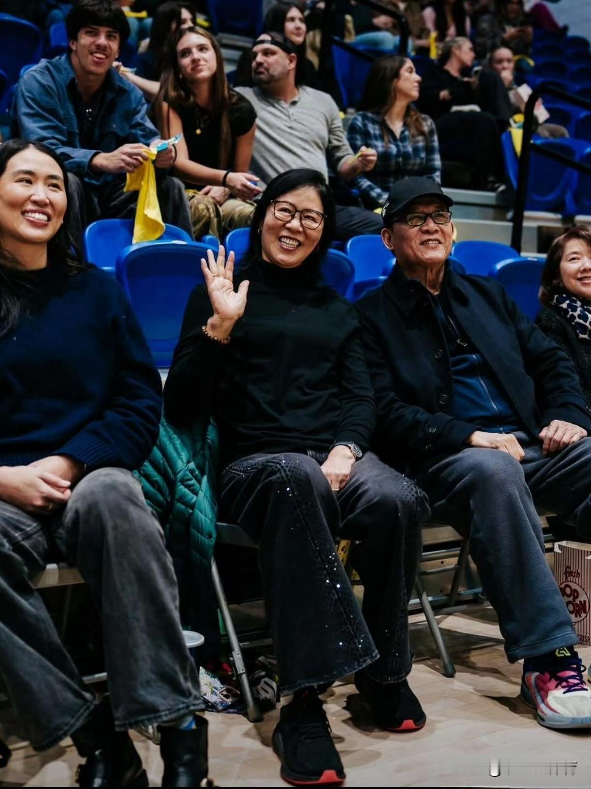美国旅居的郎平夫妇带着女儿白浪到盐湖城支持女排队长龚翔宇比赛。郎平非常时尚,穿着