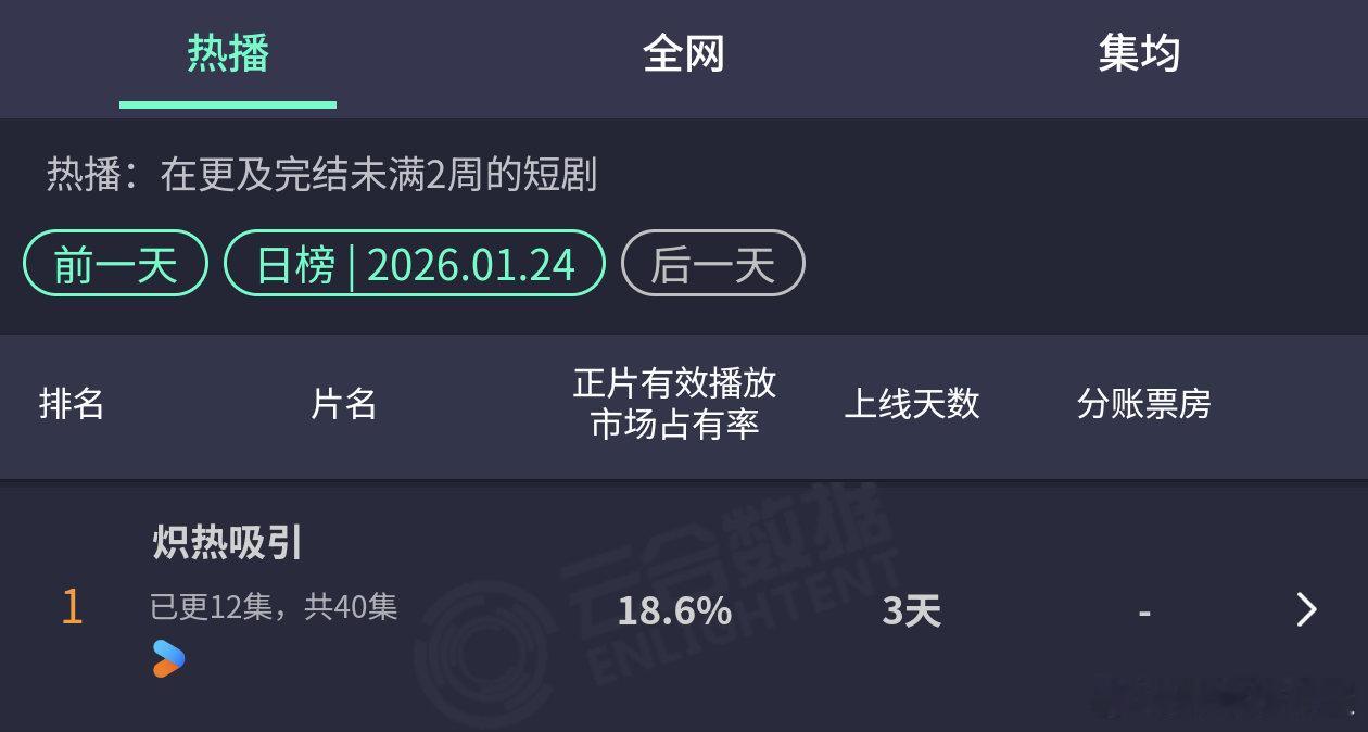 崔雨鑫、方瑾《炽热吸引》云合18.6%登顶了,才播三天,口碑好像还挺好的,还是哨向