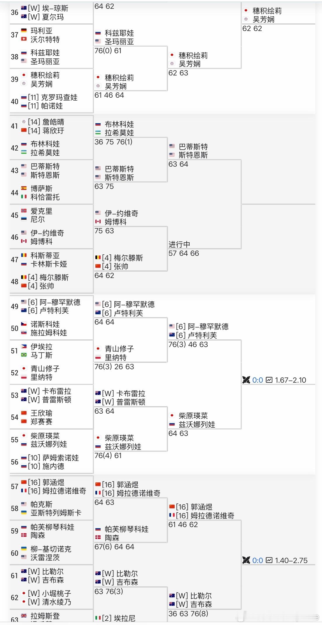 张帅组合晋级澳网女双16强看了下女双的下半区只剩下三对种子(上半区非种子都出