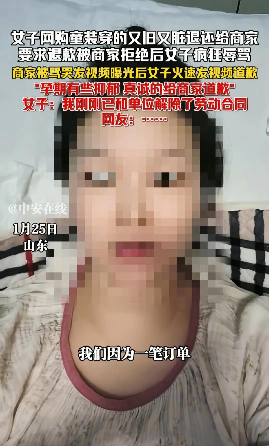 山东,女子先花59元买90码同款童装,时隔数日又下单110码,不料两天后,她将穿旧弄脏的90码冒充110码申请退款退货。但6次退款被拒,女子竟辱骂店家,店家忍无可忍一个举动,让女子当场傻眼,最终道歉还坦言已离职。 店家女老板看到后台一条条信息,她情绪激动,崩溃大哭,她不明白,人心怎么可以坏成这样。 明明自己没有没有错,为何王女士一次又一次辱骂自己,孰可忍孰不可忍! 女老板决定发视频澄清这件事来龙去脉,给自己讨个公道。 事情是这样的,女老板经营了一家童装店。 11月21日,王女士在女老板店铺下单了一件90码童装,12月28日又在同一个店下单了一件110码童装。 不料,王女士又在12月30日申请了退款退货,立马接连发消息催促女老板尽快处理退款。 彼时女老板还未收到退回的货物,按照平台规则自然无法操作,便如实告知了王女士。 王女士这边可不管这些,一直申请退款退货。 等女老板收到货后,她拆开包裹核验,却发现王女士申请退的是110码的童装,可寄回来的却是此前购买的90码。 更让人难以接受的是,这件90码的衣服不仅有明显的穿着痕迹,还沾了污渍,根本不是全新的状态。 核实清楚情况后,女老板当即拒绝了王女士的退款申请。 这下王女士不干了,她连续在平台申请了5次退款退货。 平台审核后,一直支持女老板,女老板多次拒绝退款。 王女士气得够呛,她也不管占不占理,反正恶人先告状,一次次给女老板发去辱骂信息。 看到那些信息字字刺耳,把女老板气得心力交瘁。她直接将旧衣服又退给了王女士。 由于店铺生繁忙,女老板也没空理会王女士。 不料,王女士誓不罢休,又第6次申请退款。又继续辱骂女老板。 等女老板忙完手头的事,抽空处理店铺售后时,一个让她崩溃的消息传来。 因为她超时处理王女士的这第6次退款申请,平台系统竟直接将110码那单的59元货款,从女老板的账户里自动退给了王女士! 这就意味着,女老板没收回110码新衣服,还赔了59元货款,白收了件不属于自己的90码旧衣,甚至倒贴了寄回旧衣的运费。 而王女士直接钱货双收,白拿110码新童装,拿回自己的90码旧衣,还凭空赚了59元退款,纯纯的白嫖到底。 再看看那些乱七八糟的辱骂信息,满心委屈和气愤的女老板忍无可忍。 最终将整件事的聊天记录、退货核验照片、平台退款记录都整理好,发视频还原了全部真相,为自己讨公道。 视频发出后,王女士彻底傻眼,眼看事情闹大,自己理亏在先,她终于再平台上向女老板低头道歉,还坦言自己如今已经离职。 后记者得知王女士是融媒体中心工作人员后。 网友更是大跌眼镜,认为王女士作为本应懂法守规、传播正能量的从业者,却知法犯法钻规则漏洞,反差感让人难以接受。 而她后续的道歉避重就轻,只提辱骂不提恶意退货,还拿产后抑郁、离职当借口。 网友直言这不是真心认错,只是迫于舆论压力的无奈之举,抑郁和失业从来不是欺负人的挡箭牌。 大家纷纷心疼女老板本本分分做生意,却平白遭遇恶意退货和辱骂,最终还钱货两空,纷纷支持女老板报警处理,要求王女士承担相应责任。 《消费者权益保护法实施条例》明确规定,消费者无理由退货应当遵循诚实信用原则,不得利用无理由退货规则损害经营者和其他消费者的合法权益。 王女士以穿旧弄脏的90码童装冒充110码退货,违反了诚实信用原则,若给女老板造成损失,应当承担相应的赔偿责任。 《治安管理处罚法》第42条规定,公然侮辱他人或者捏造事实诽谤他人等行为属于违法。 王女士多次在平台上给女老板发去辱骂信息,若达到“公然”的程度,可能会面临十日以下拘留或者一千元以下罚款。 同时,《民法典》第1042条规定,民事主体享有名誉权。 王女士的辱骂行为若侵害了女老板的名誉权,应停止侵害、赔礼道歉或赔偿损失。 王女士的行为既违背道德,又触碰法律边界,更是给身边人做了恶劣的负面榜样。 希望所有人都不要向王女士学习,网购守规则、做人讲诚信,别为了小利丢了人品。 对此,你怎么看?