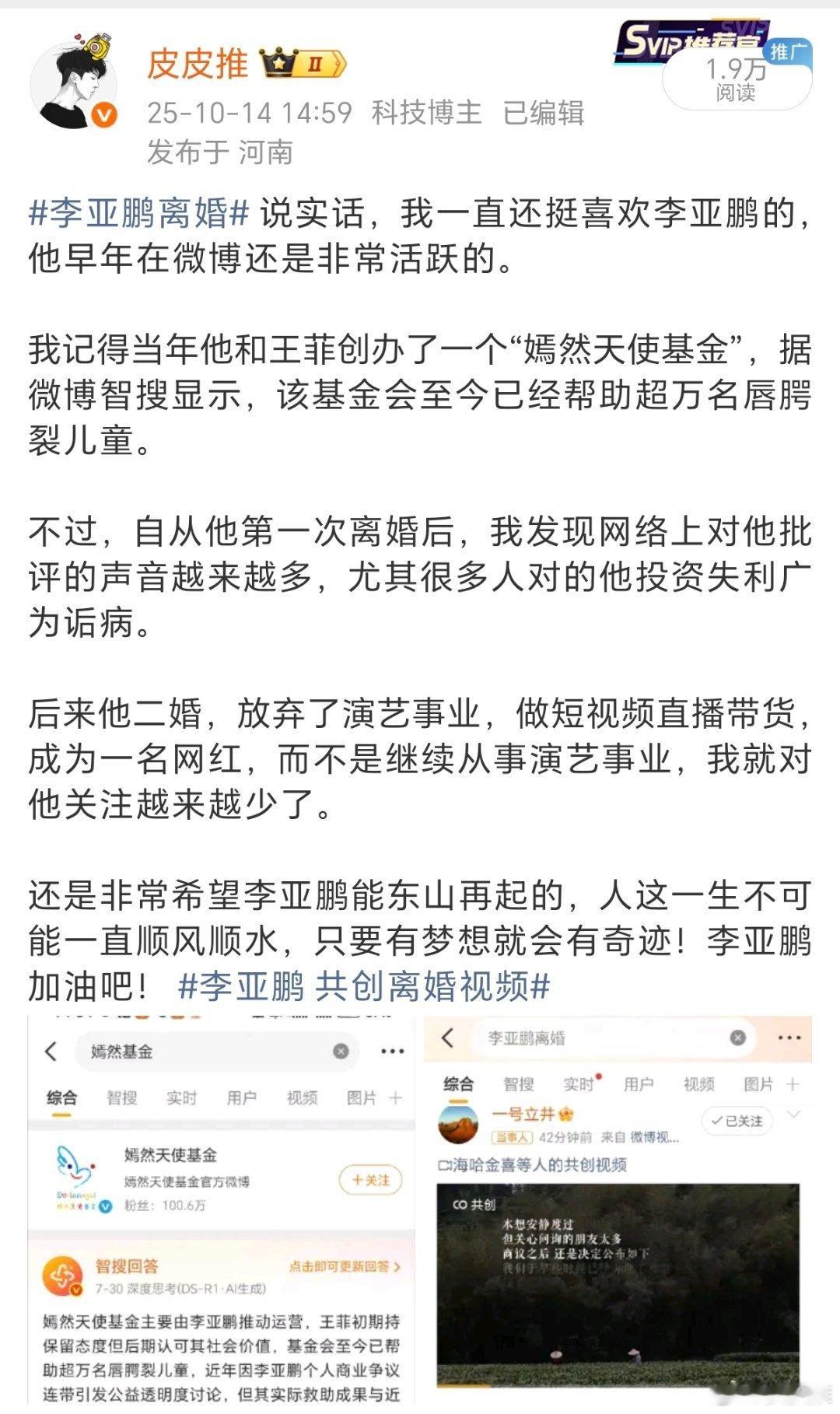 李亚鹏以前的经纪人就是现在胡歌的经纪人去年李亚鹏离婚时,我就特别希望他能东山再起,如今他确实做到了。这也让我更加坚信,善有善报!