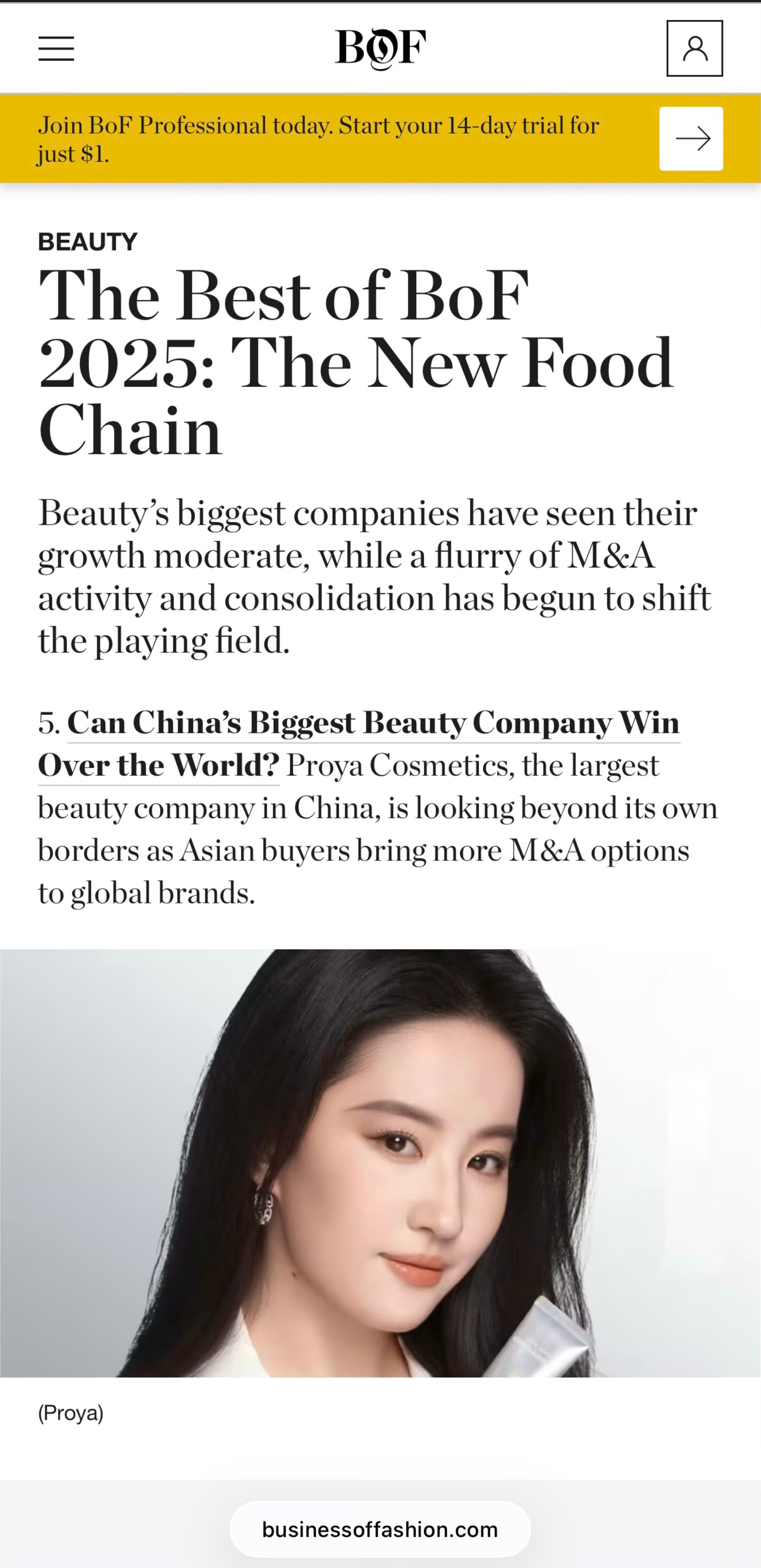 刘亦菲 继上次BOF报道珀莱雅Proya并以全球代言人刘亦菲的照片作为封面照之后👉网页链接 ,BOF年度关于Beauty行业大事件盘点中在珀莱雅的部分又用了天仙照片,无论是国际大牌还是国民头部,能和仙姐合作都是有福气的刘亦菲珀莱雅防晒全球代言人
