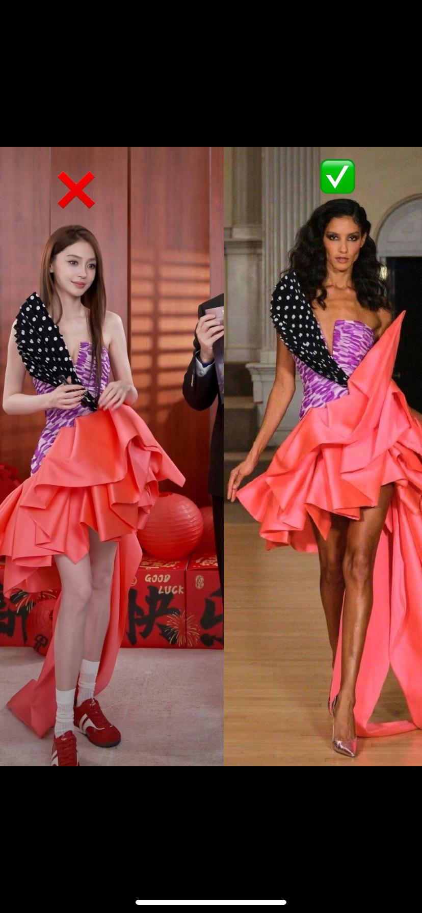 这次杨颖可是闹了个大笑话 昨天还吐槽她用高定礼服搭配300块的鞋子,显得“用力过