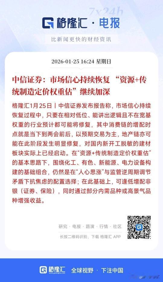 -接下来A股该如何配置,中信给出了自己的建议 中信表示:现在市场的信心一直在恢复,低位有逻辑的板块都有修复的机会,现在买低位、有逻辑、非大权重的板块,修复概率高;消费、地产链(尤其建材)当下到两会前有机会。 实际上现在村里一直在打压大权重个股,以达到压指数的目的,反而有色,军工,科技股等这些赛道板块出现了牛市的行情。 目前看只要是和指数有关的板块机会都比较渺茫,像券商,银行等,虽然一直没有涨,也是低估值低位,但是资金似乎并不感冒,这就是现在A股的市场。