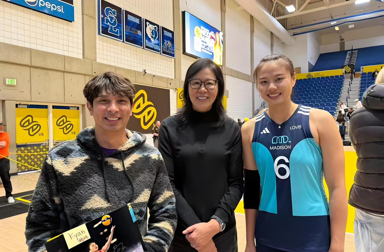【郎导一家子现场为龚翔宇加油助威】 美国女排联赛第二季第四场 郎导带着王教授和白