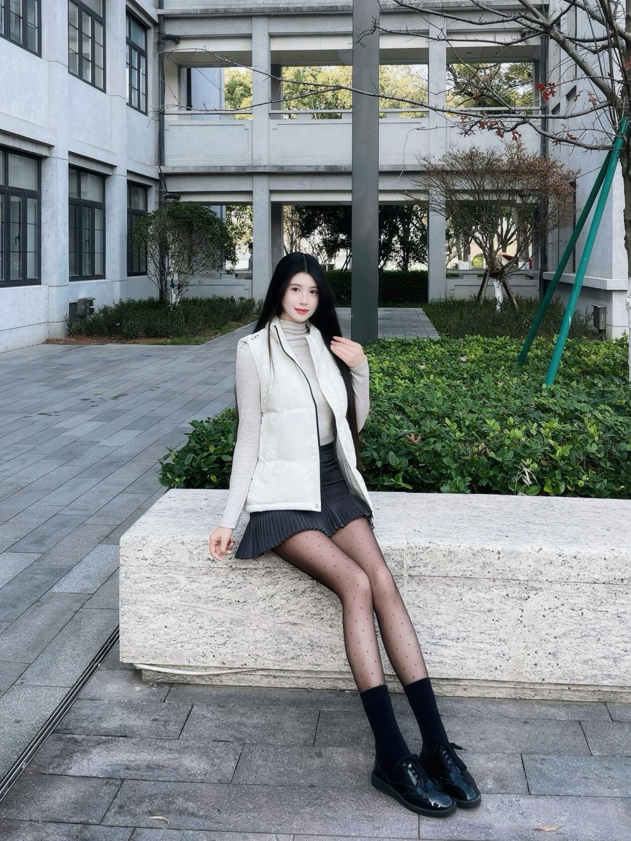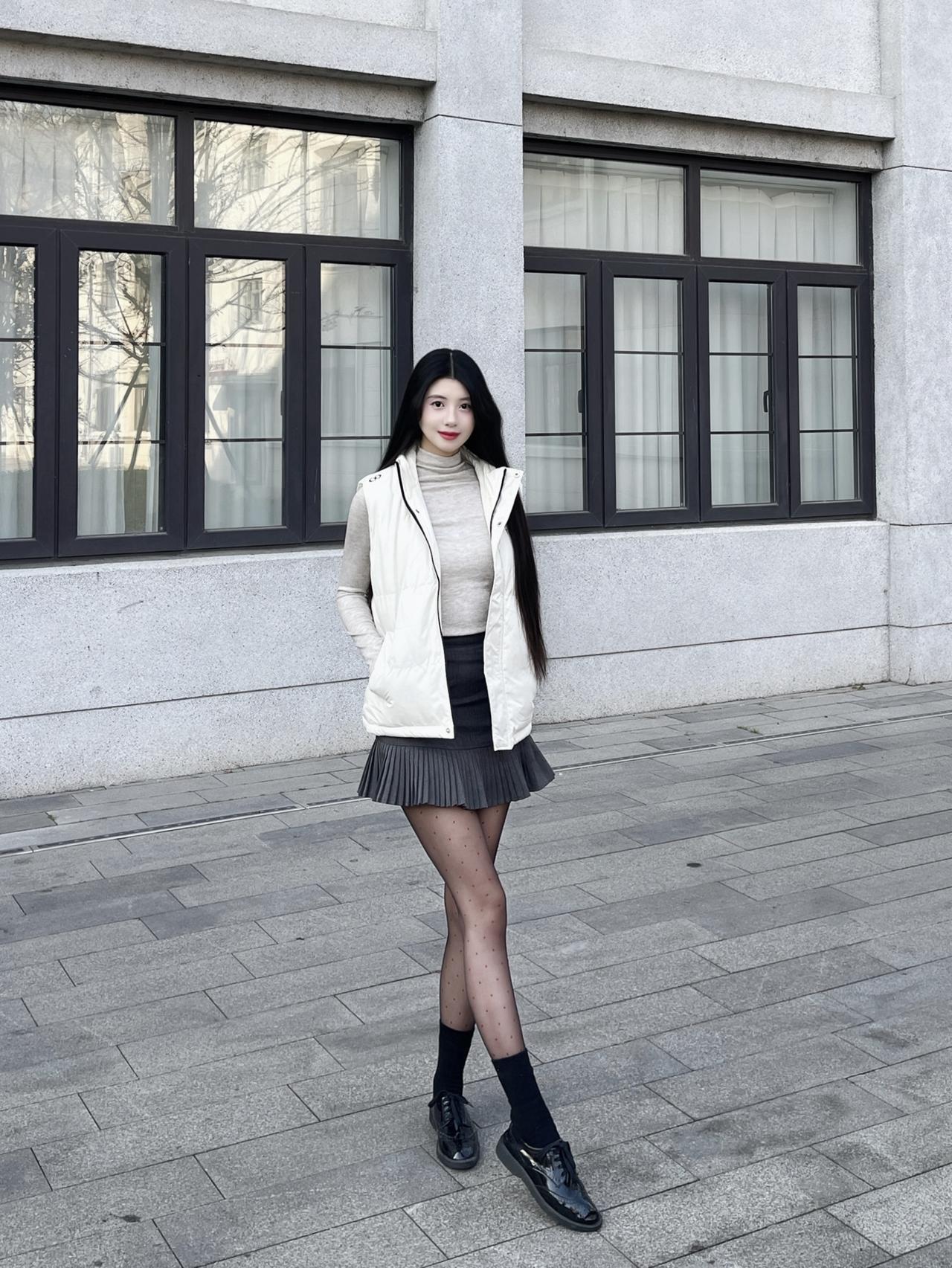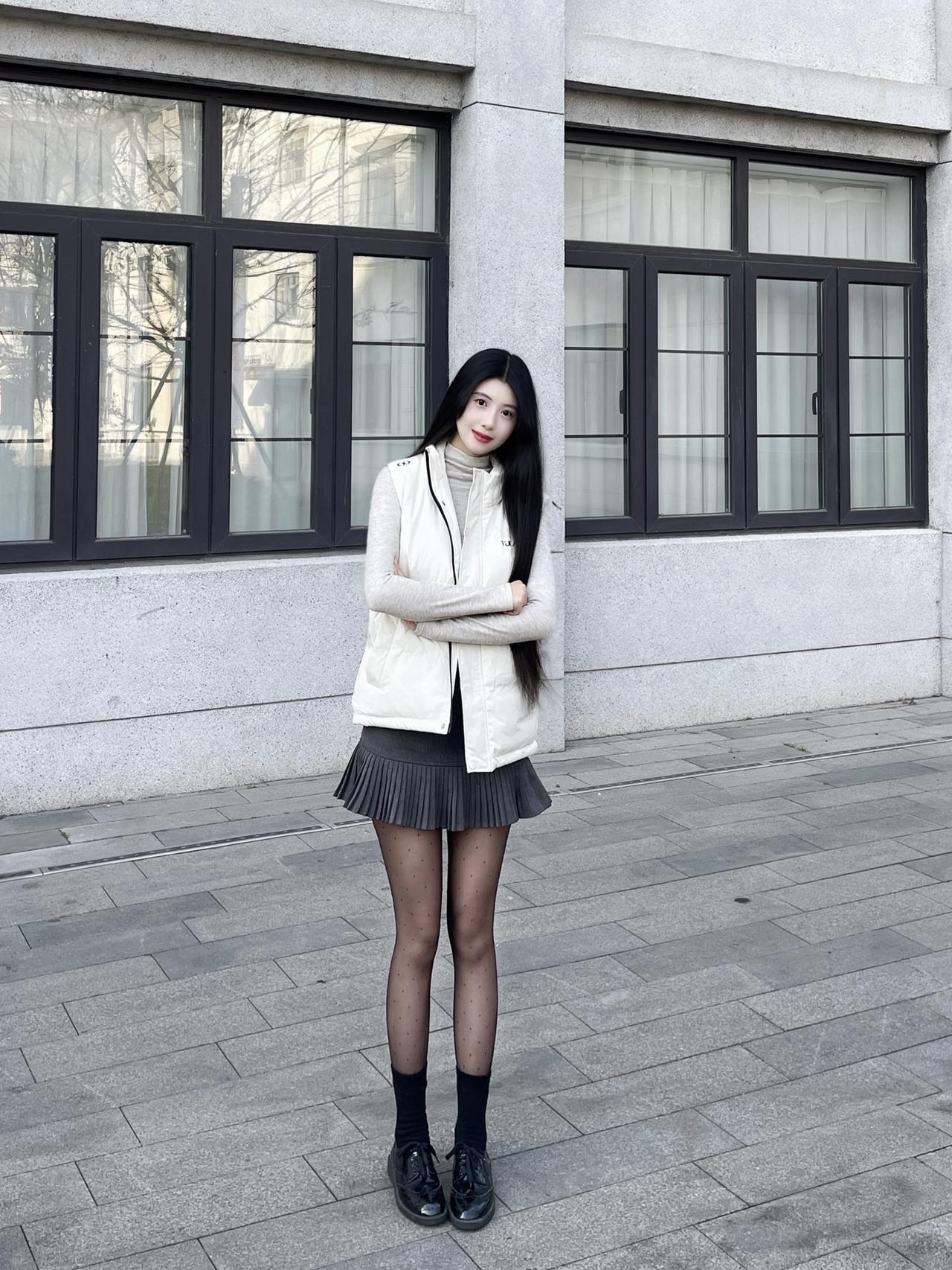 裤袜穿搭🧚🏻♀️冬日叠穿美学|||菱格棉服自带慵懒滤镜 灰色连裤袜和the