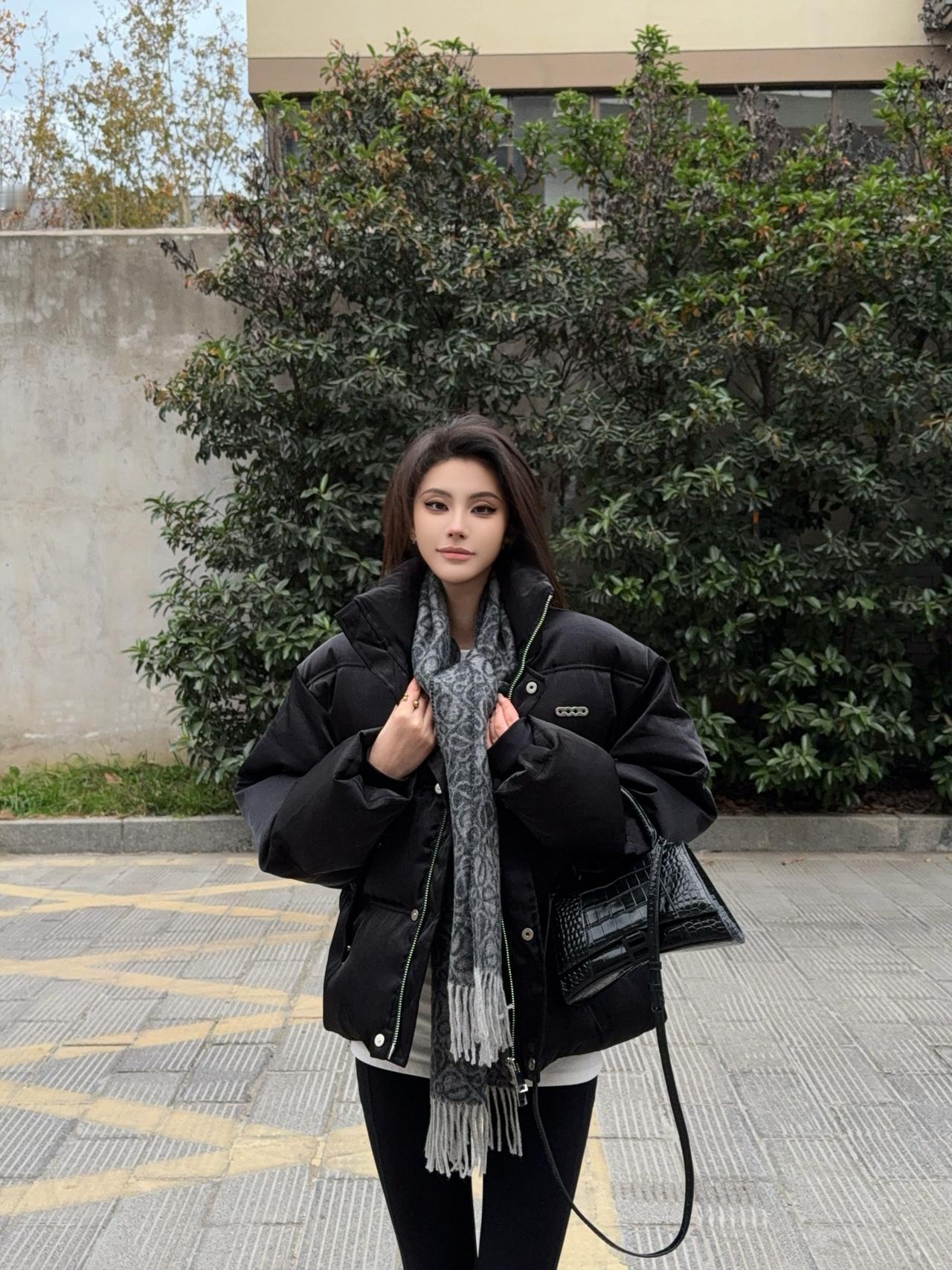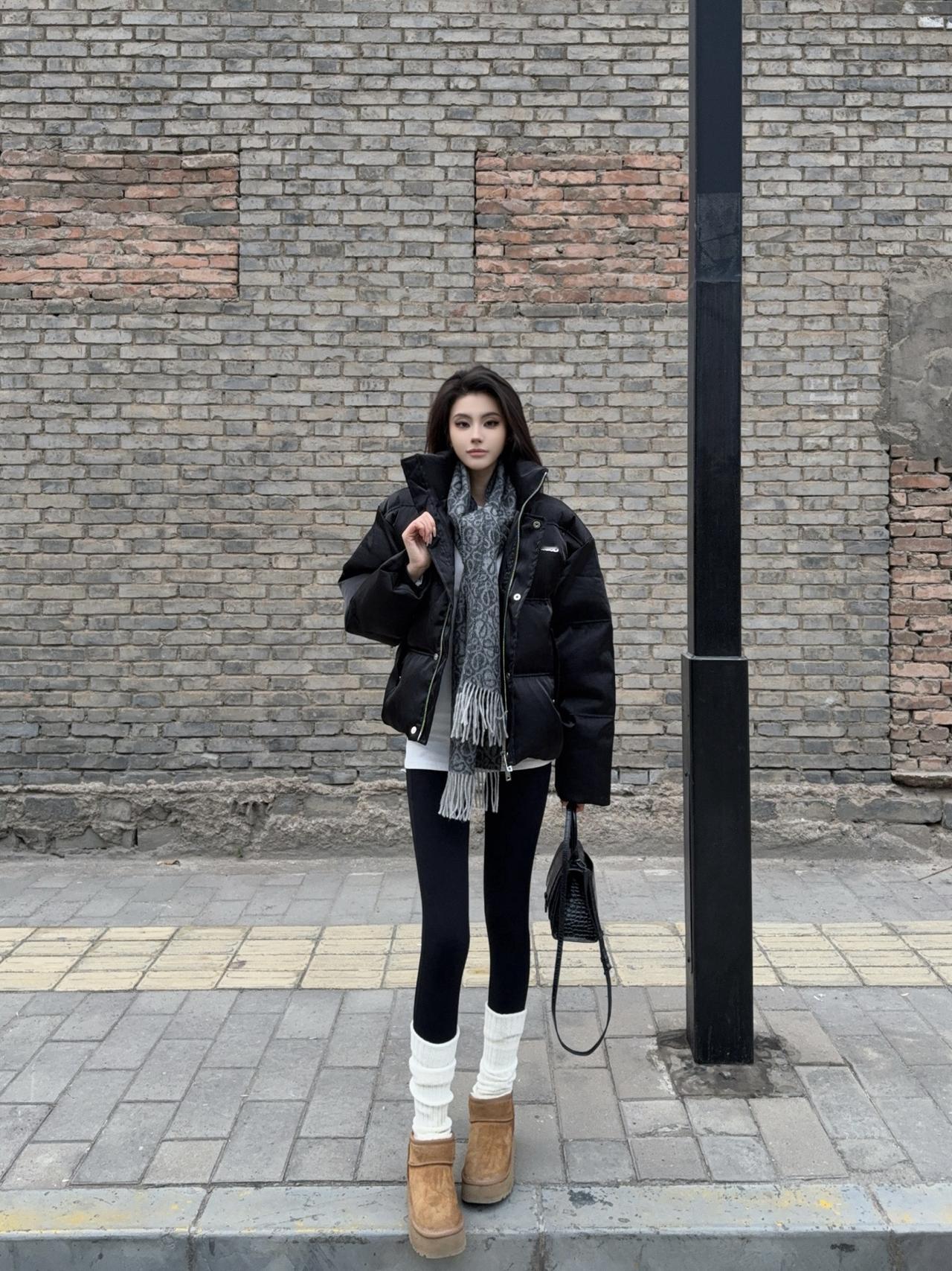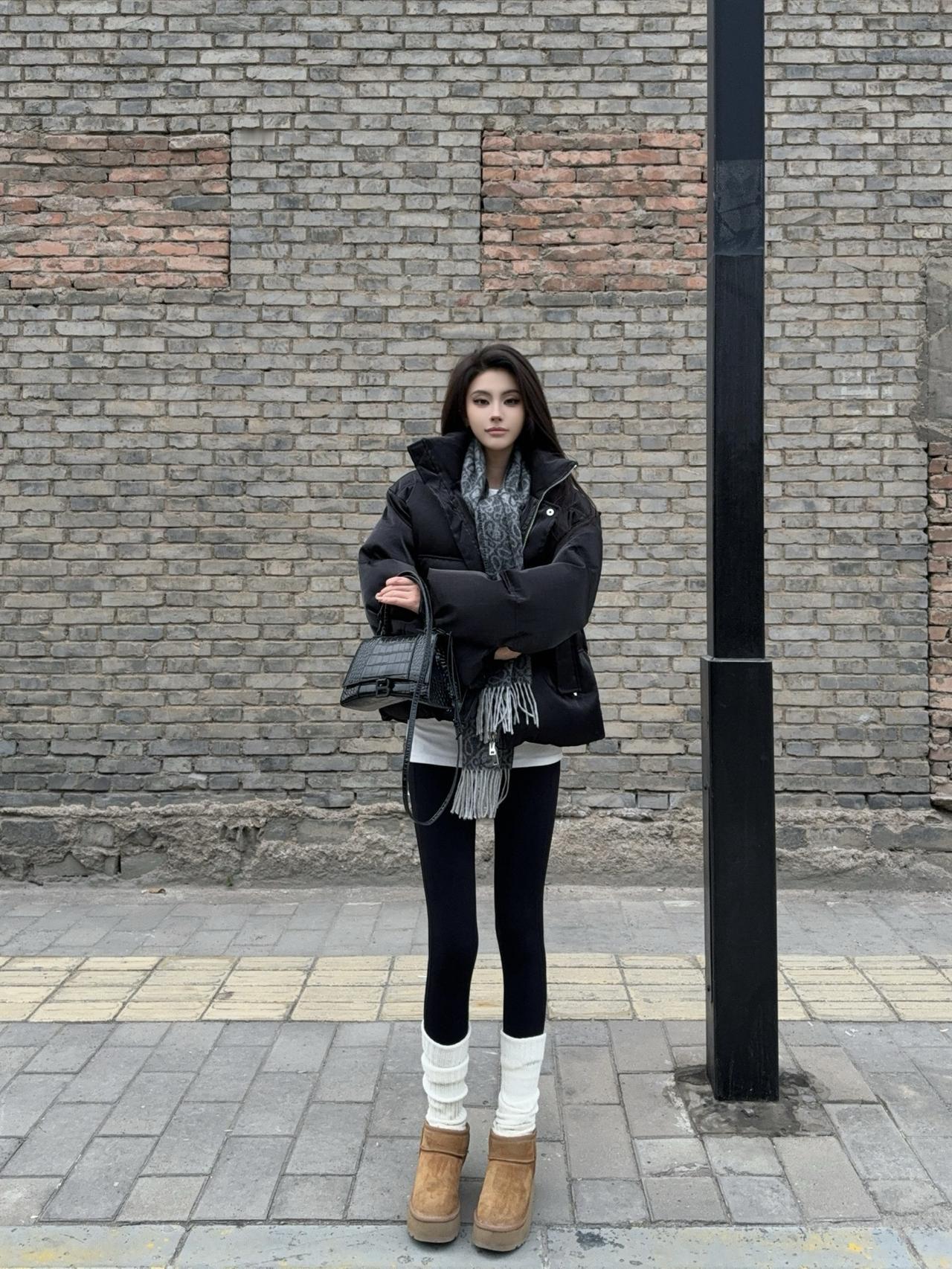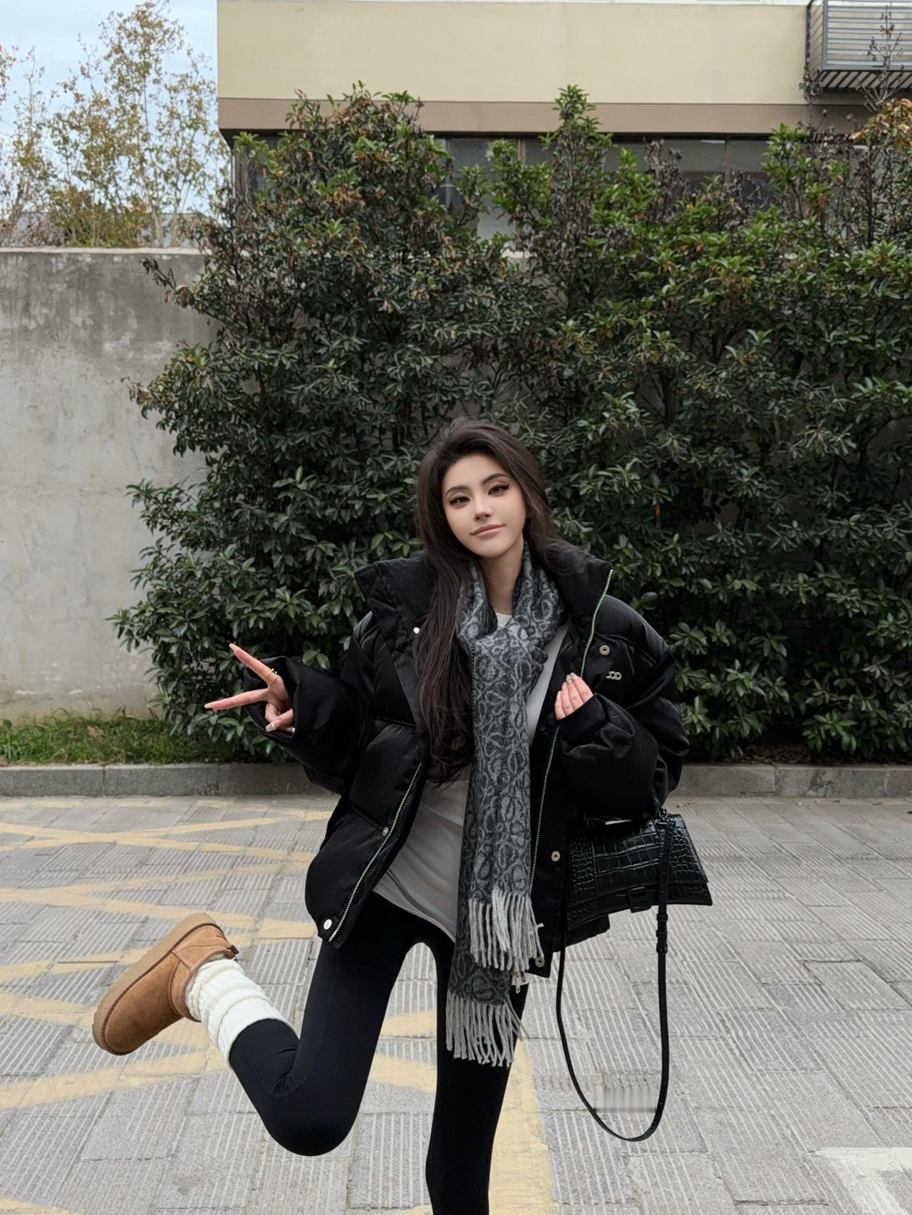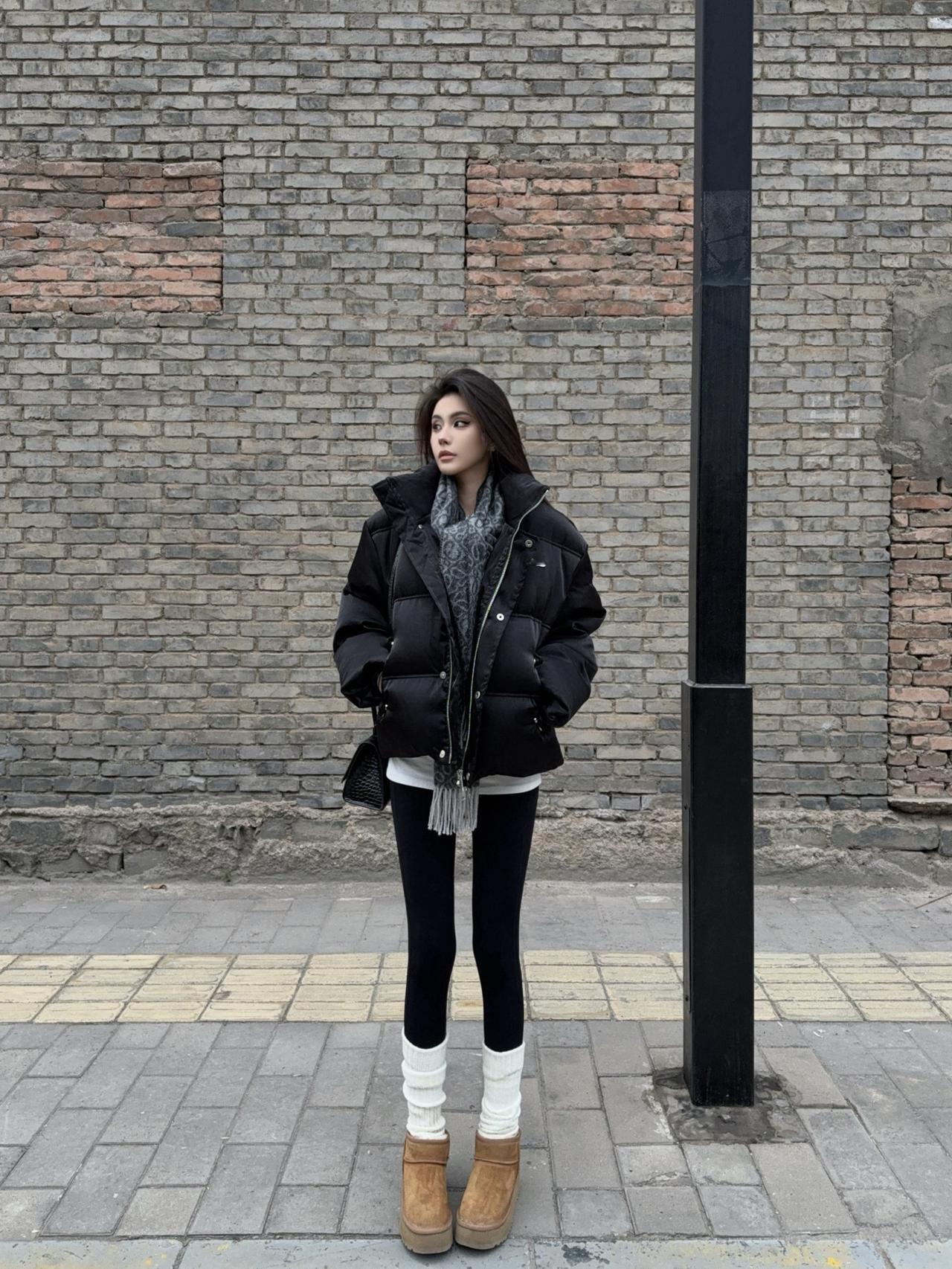 这件灰色羽绒服高级又百搭, 蓬松度够够的但完全不会显臃肿! 搭黑色光腿神器+高跟