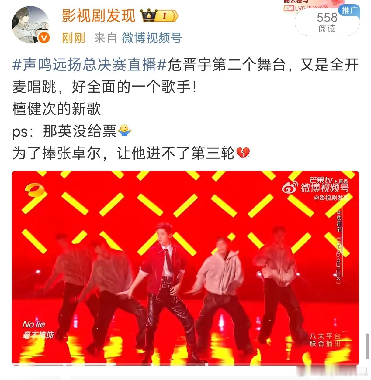声鸣远扬总决赛危晋宇如果进不了第三轮,对那英路转黑