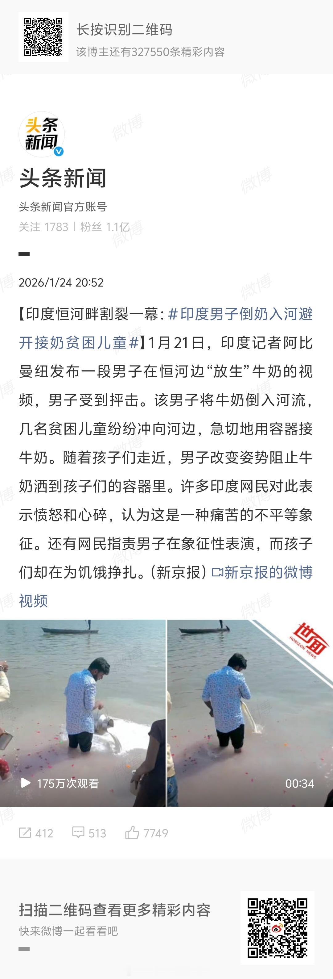 印度男子倒奶入河避开接奶贫困儿童资本主义倒奶自古有之