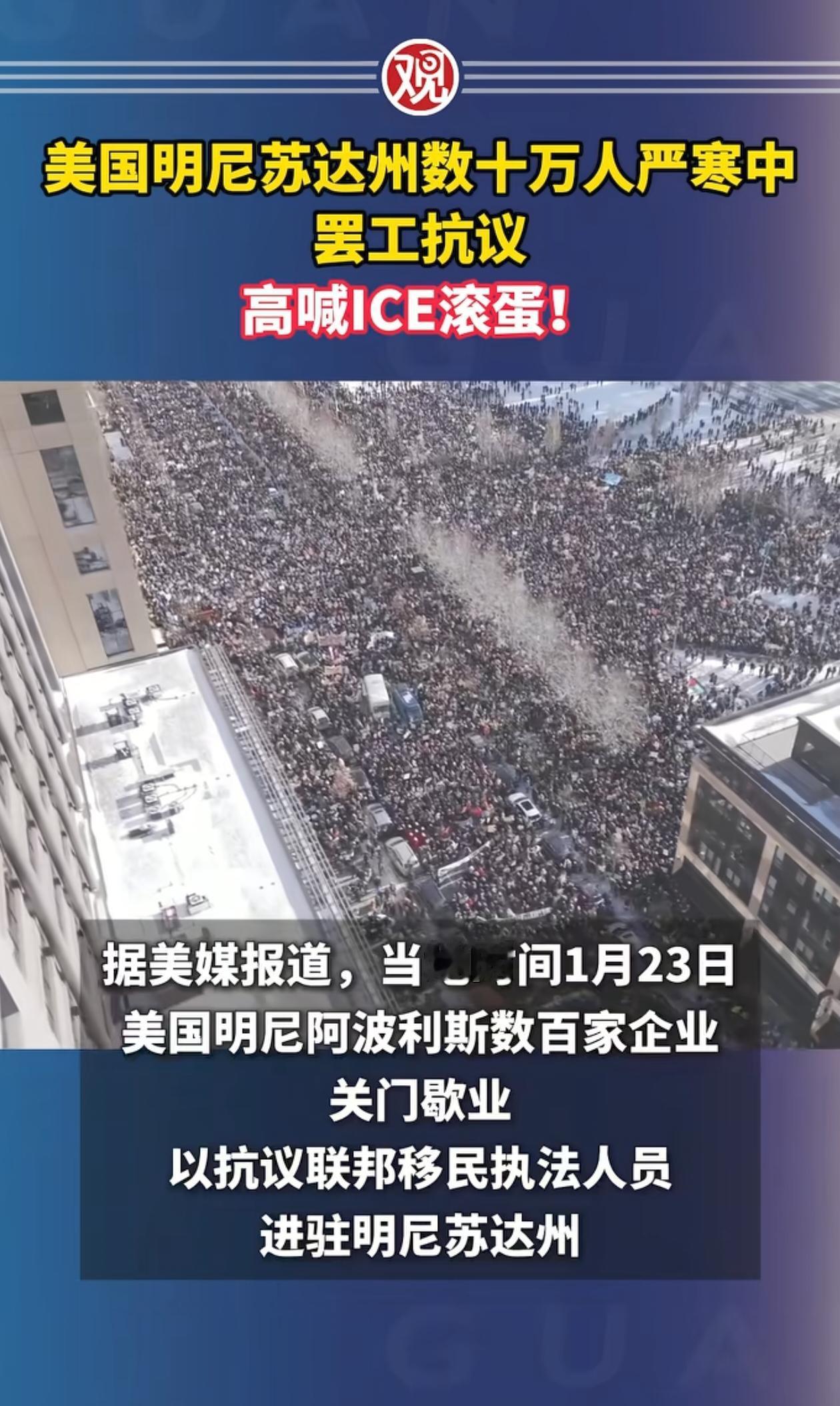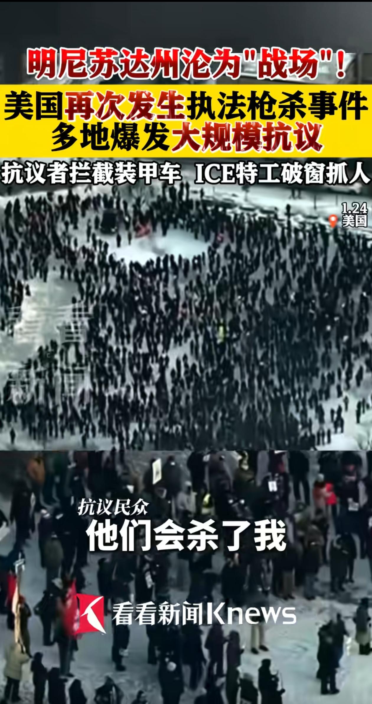 美国后院起火,就看特朗普如何应对。明尼苏达州因执法枪杀事件引发民众大规模抗议,局面失控。特朗普最近忙着吞并国外领土,自立新的“联合国组织”“和平委员会”,还要管理外国事务,对国内事务疏于管理,事情闹得这么大,我们也可以“发声”和“帮忙”,如果他们制造流血事件,建议我们向美国派兵,维护正义。