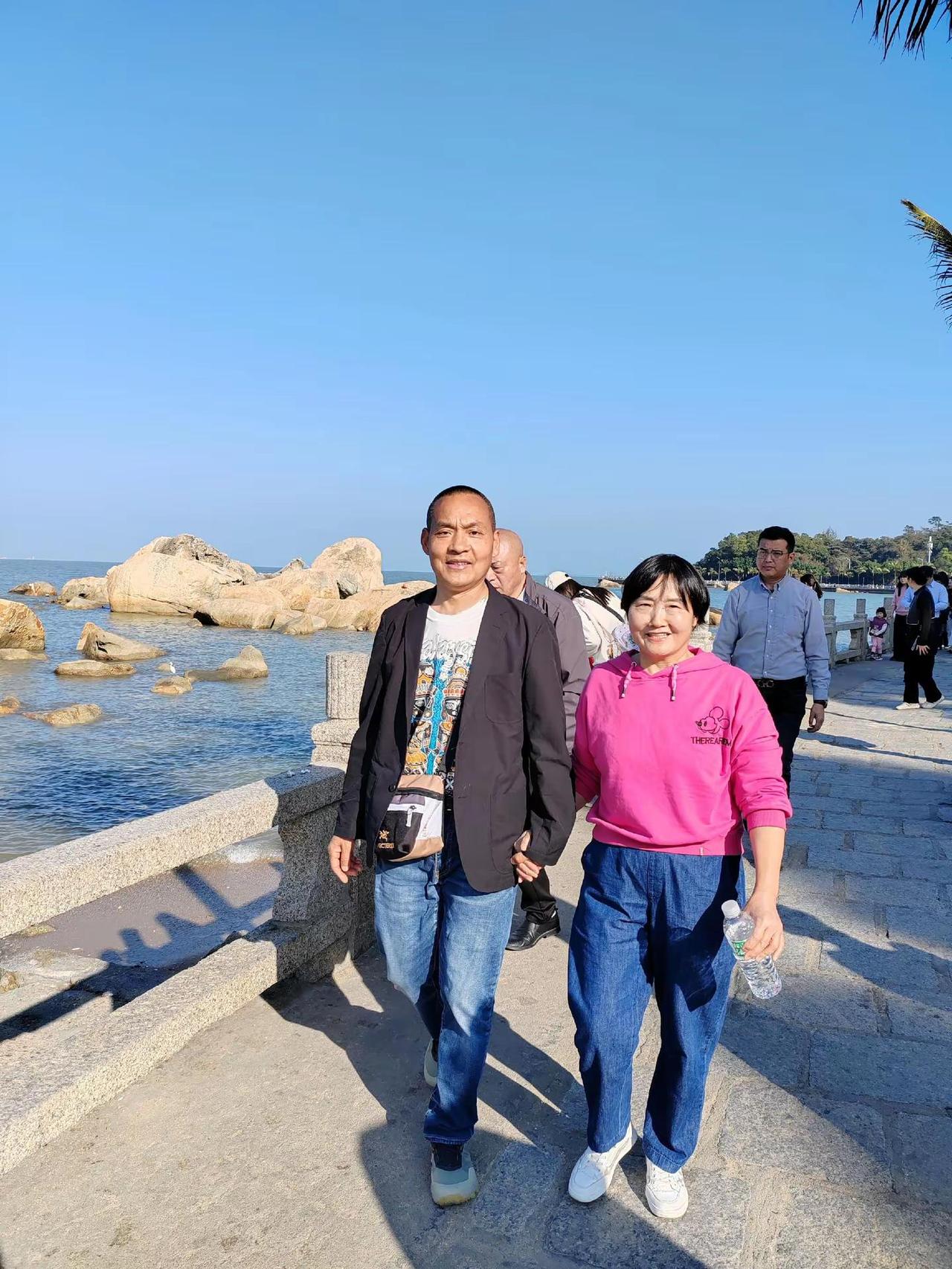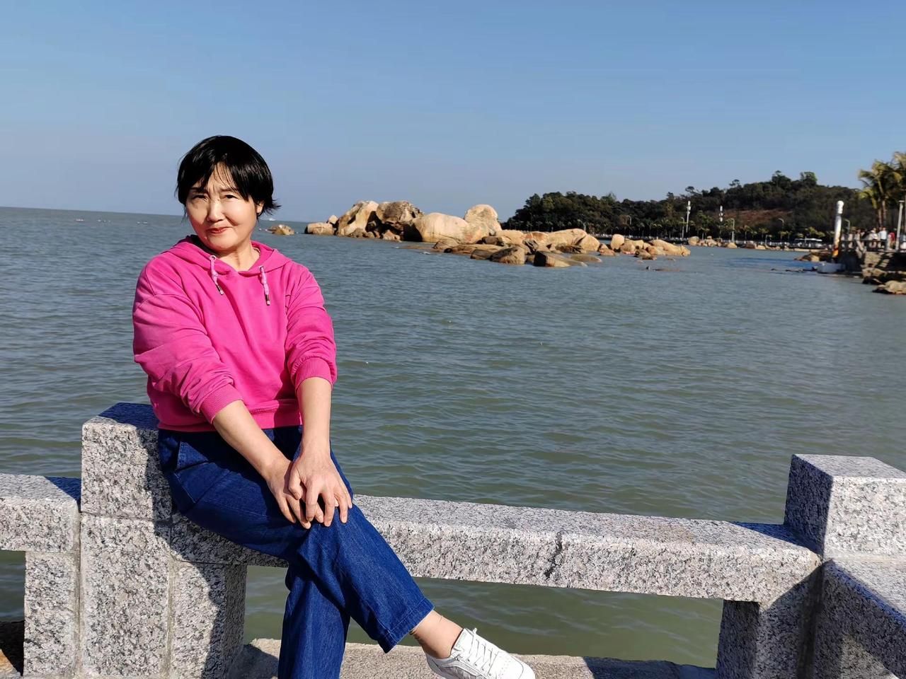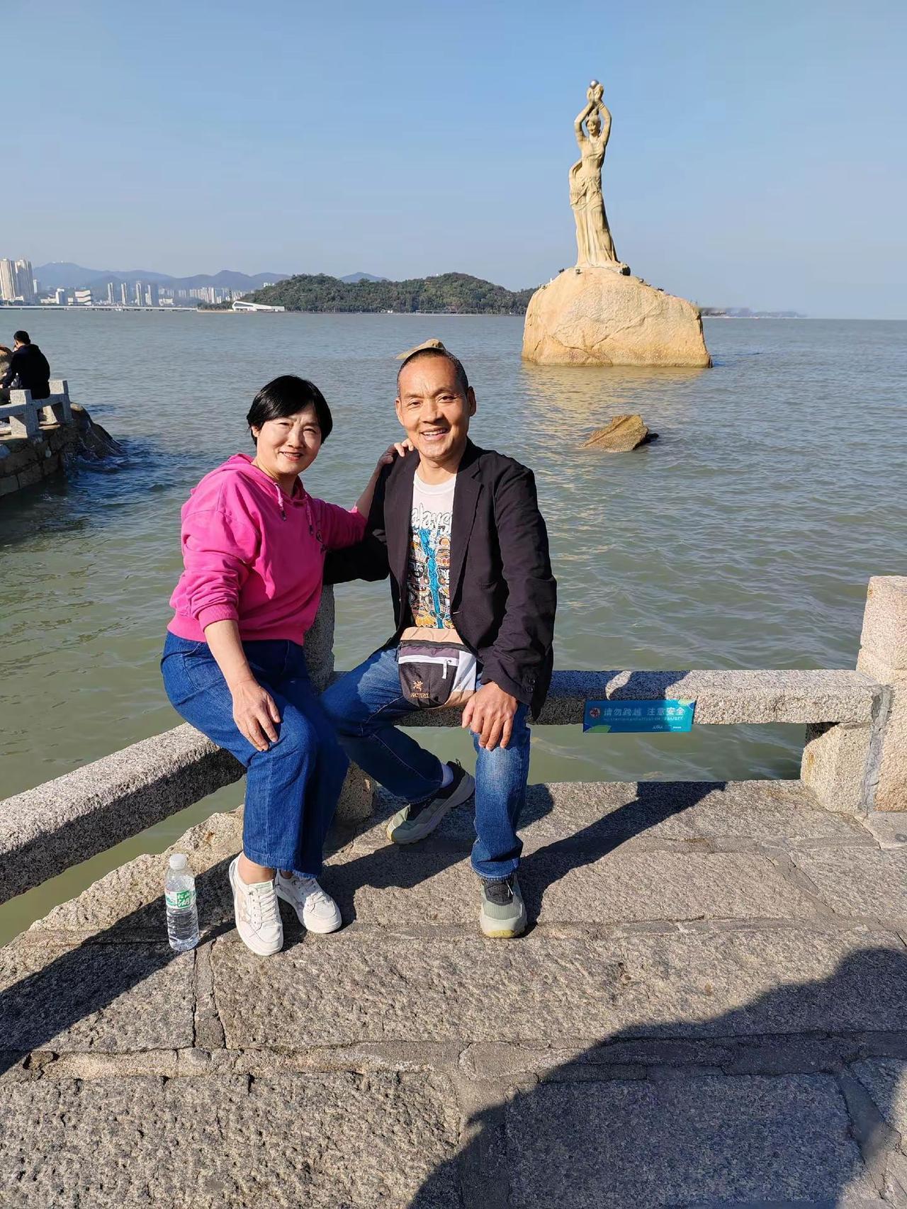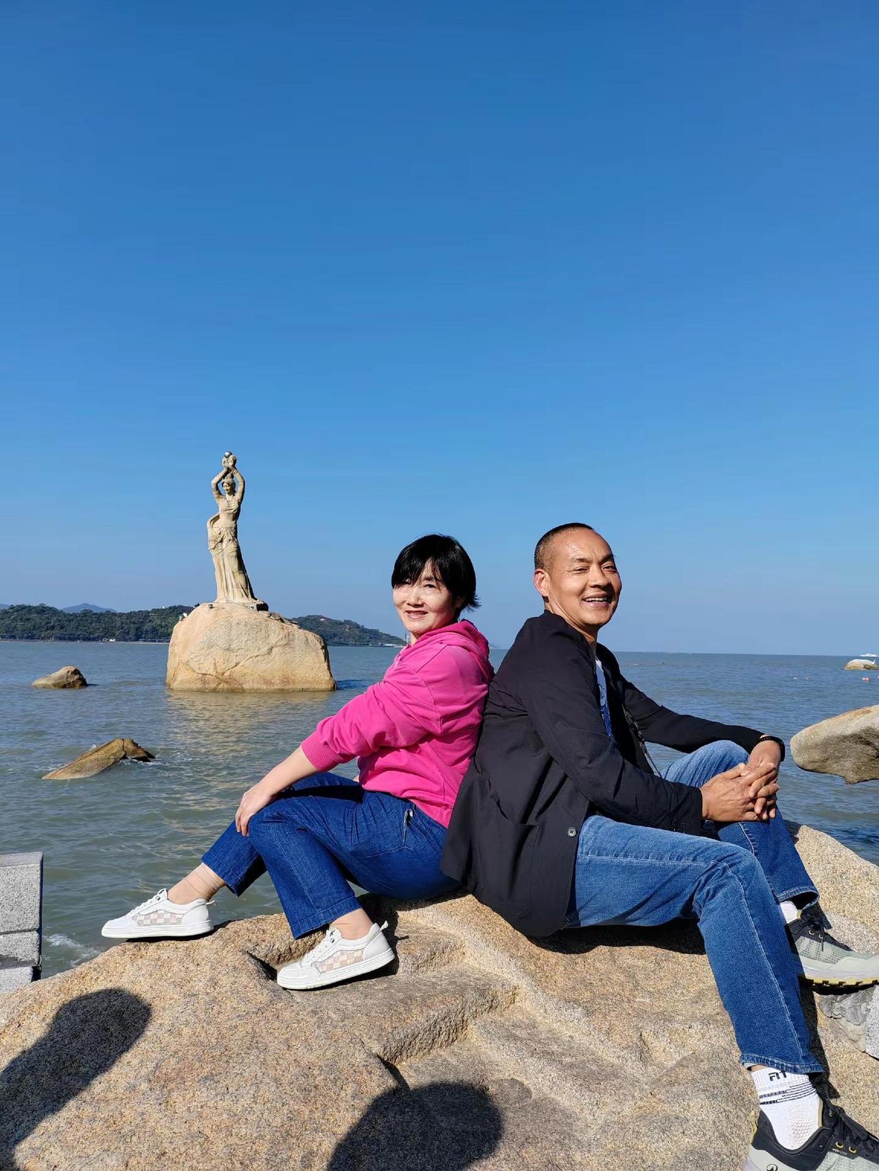 <珠海情侣路漫步> 渔女像 玉臂举明珠,青丝系海风。礁石听潮立,千年守一诺。笑颜漾碧波,烟霞满裙罗。回眸苍茫处,云帆正穿梭。