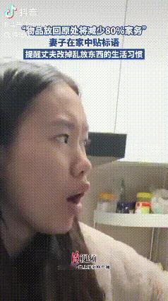 “没想到吧!”广西,一妻子为让丈夫改掉乱放东西的习惯,在家贴标语,结果,家务量竟悄悄减少,网友:“这标语贴的,是家庭智慧的小妙招!” 视频显示,妻子为提醒丈夫,花20多块钱定制了标语“物品用完放回原处 将减少80%的家务活”贴在家中。 当被问到是否看到标语时,丈夫表示看到了,会顺手把物品挂回去。 妻子说道,这样一来,家务能在2秒钟之内就解决掉。她还坦言,自家没有很好的学历,家庭也不富裕,所以希望生活能认真有条理,规划好一点,别活得东倒西歪,以免倒霉的事情发生。 网友们看到这一幕,纷纷点赞,还说自己也要跟着学一招! 有网友评论,这标语可以全国推广,拯救无数家庭主妇。 还有网友调侃,这哪里是标语,这是家庭内务管理的“军令状”啊。 妻子一开始为家务头疼,贴了标语后,丈夫习惯改变,家务减少。 这不是标语有魔力,是妻子藏在生活细节里的用心,那20多块钱花的,是为了让家更有序的小智慧!