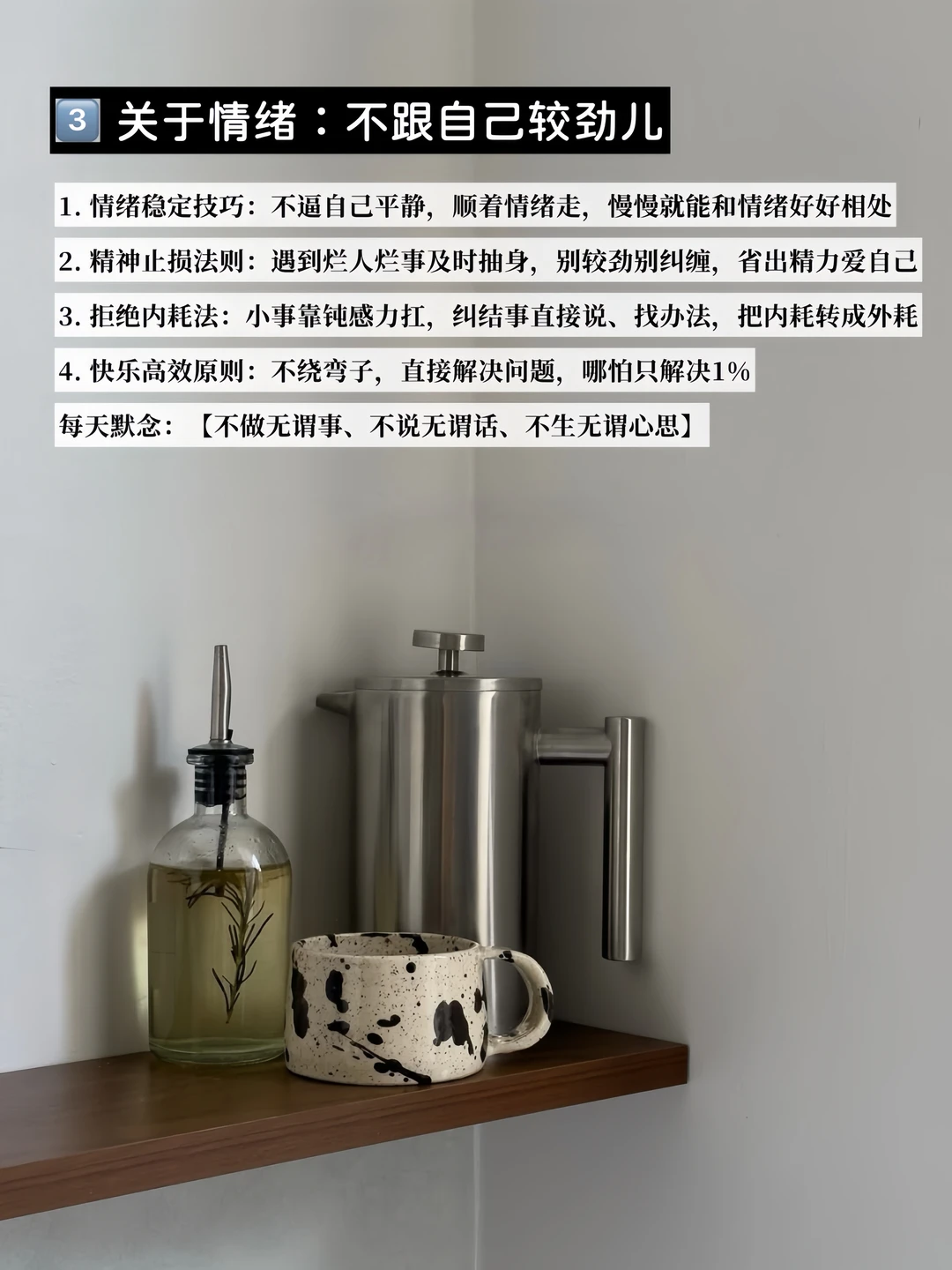 你是不是总情绪丧➕手忙脚乱➕能量低😮💨 根本原因就是在琐事上耗太多时间 30岁后我才懂,时间精力是最宝贵的资源 无关紧要的小事,占满了日子却没半点收获 . 很多人以为极简就是“扔东西”😣,其实不然 它是删减冗余的选择哲学,把精力聚焦在真正重要的事上 极简后我学会用固定流程减少决策疲劳 不靠意志力硬扛,让80%的日常形成惯性 . ✅分享11个减少决策的方法 主动选择,而非被动接受匮乏 你会发现:少即是多,空即是满