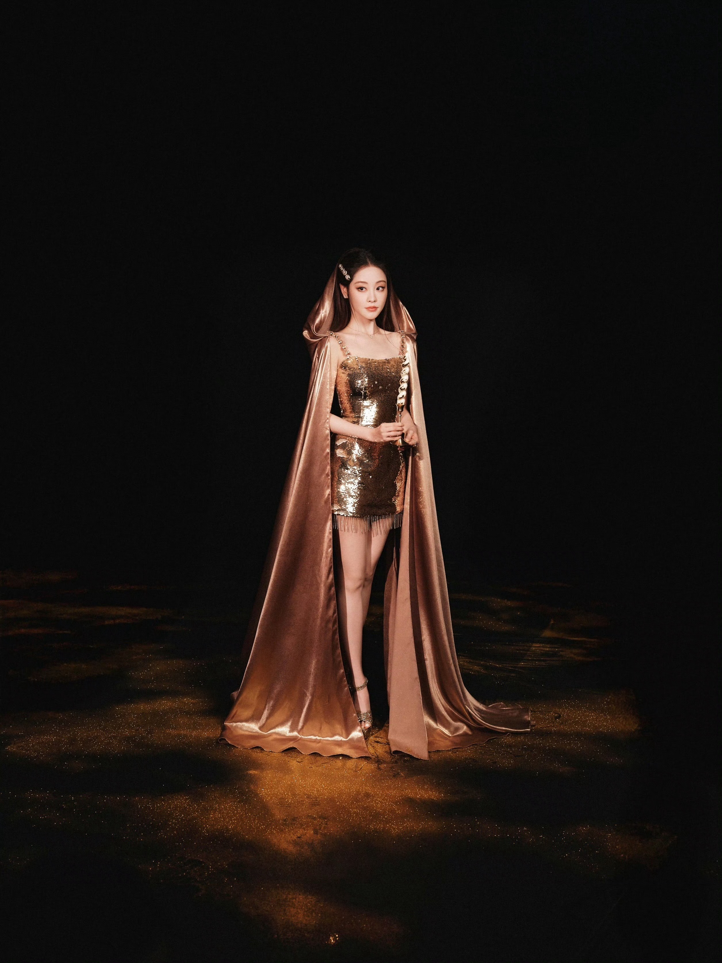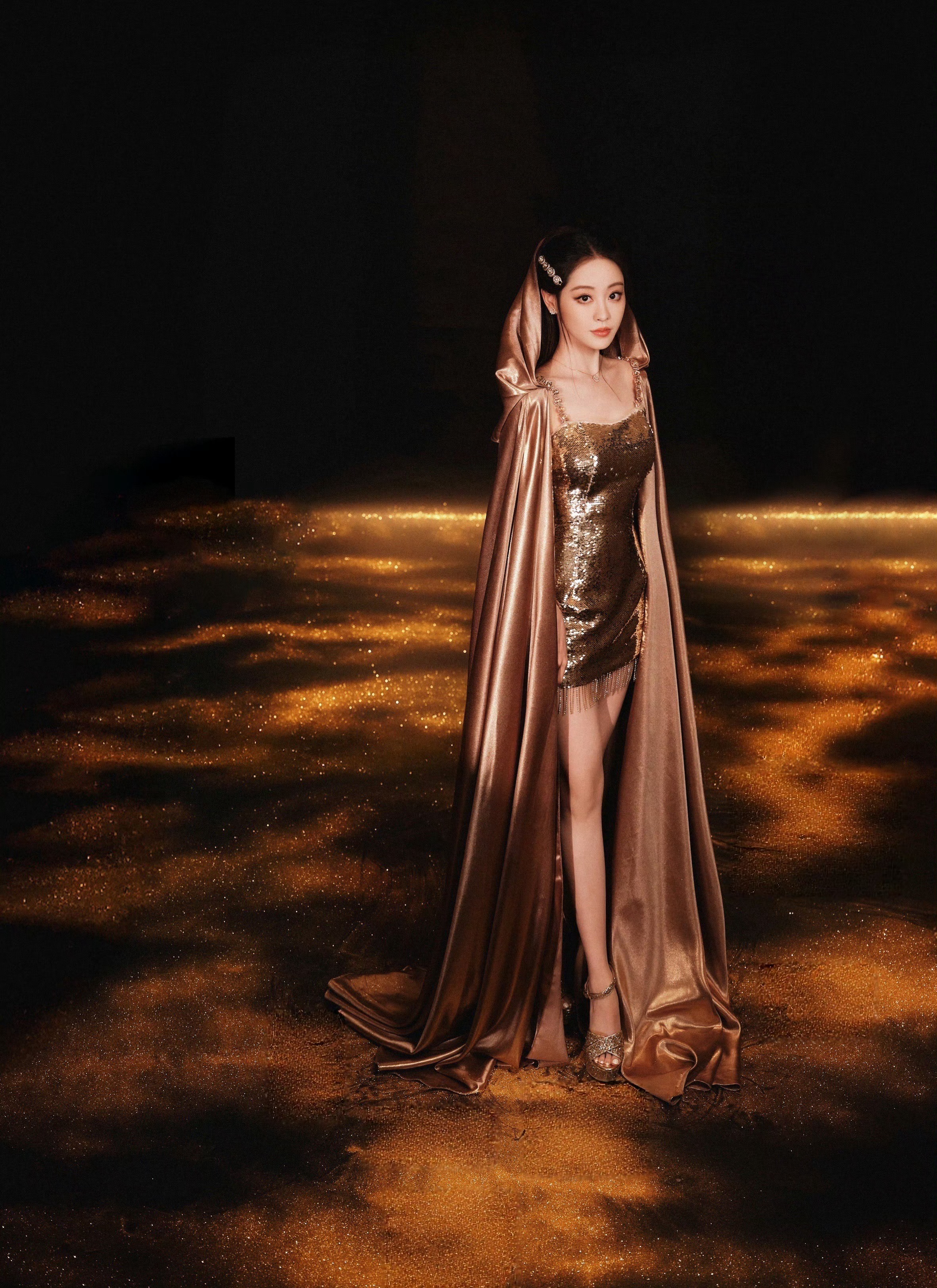祝绪丹鎏金亮片吊带裙祝绪丹鎏金亮片吊带裙真的好美啊,完全展现出来的流光溢彩的一