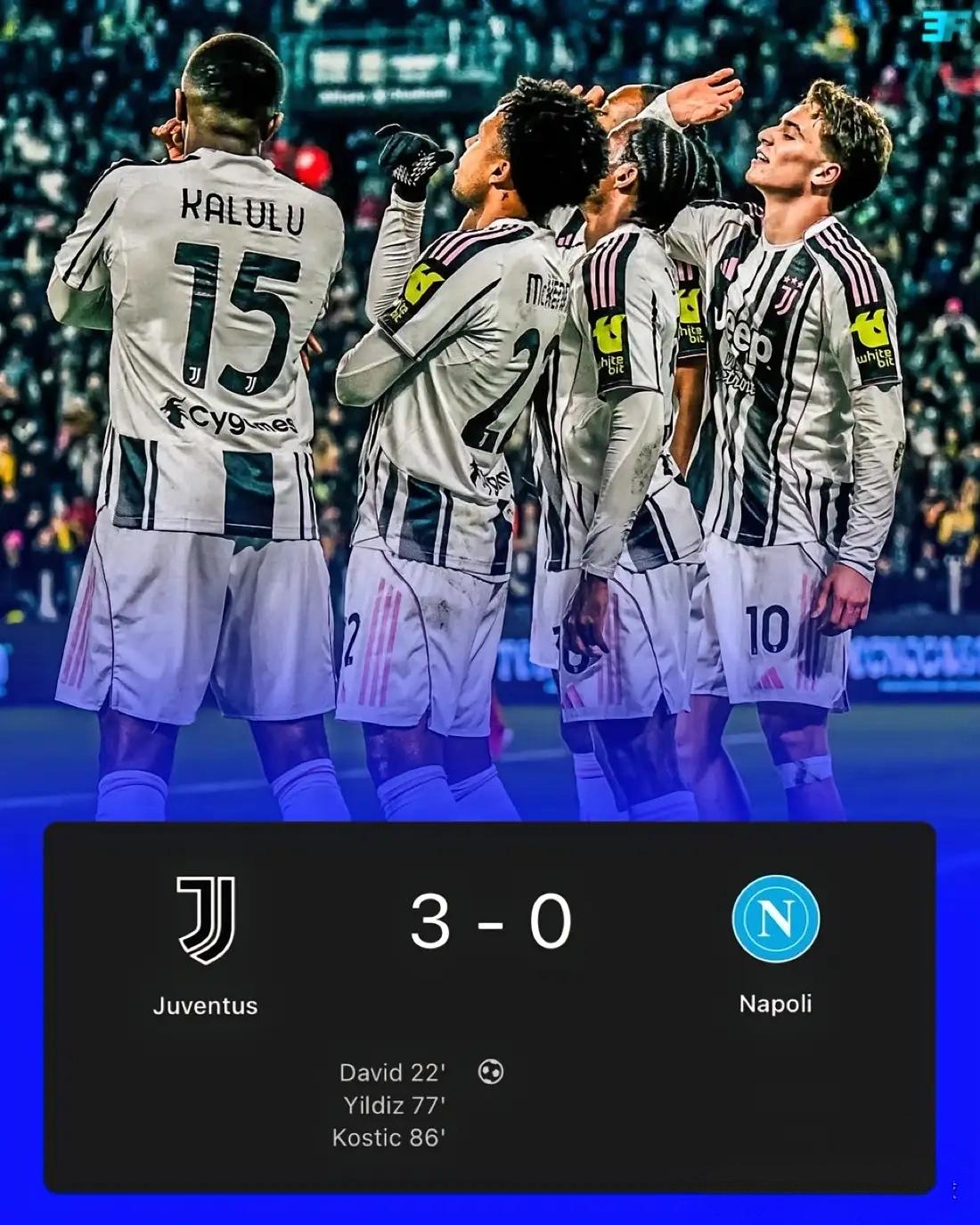 【尤文图斯痛饮,三球击败那不勒斯】尤文的前任主帅恐怕要心碎了,国际米兰拉开了差距,急需抢分的档口,卫冕冠军的他们又遭受重大打击。 意甲第22轮,尤文图斯在安联竞技场3-0完胜那不勒斯,终结对手6轮不败,尤文暂升至积分榜第四。在欧冠赛场击败穆里尼奥的本菲卡,巩固欧冠附加赛资格之后,联赛中也稳住了,击败了斯帕莱蒂的前任东家。 第22分钟,洛卡特利挑传,戴维推射破门,尤文1-0。第77分钟,米雷蒂助攻,伊尔迪兹小角度推射再下一城,2-0。第86分钟,科斯蒂奇远射锁定胜局,3-0。 孔蒂抱怨的伤兵满营有所缓解,第79分钟,卢卡库替补登场,完成赛季首秀。都说那不勒斯要舍弃他了,这个比利时高塔还得争取有好的表现,希望能延续他的合同。 而另一个比利时人,在踢完对阵国际米兰的点球之后马上旧伤复发下场,一直伤缺,这也是孔蒂非常头疼的。可怜的德布劳内,只能看着他们做出痛饮的样子,应该出来打尤文。 冬日生活打卡季