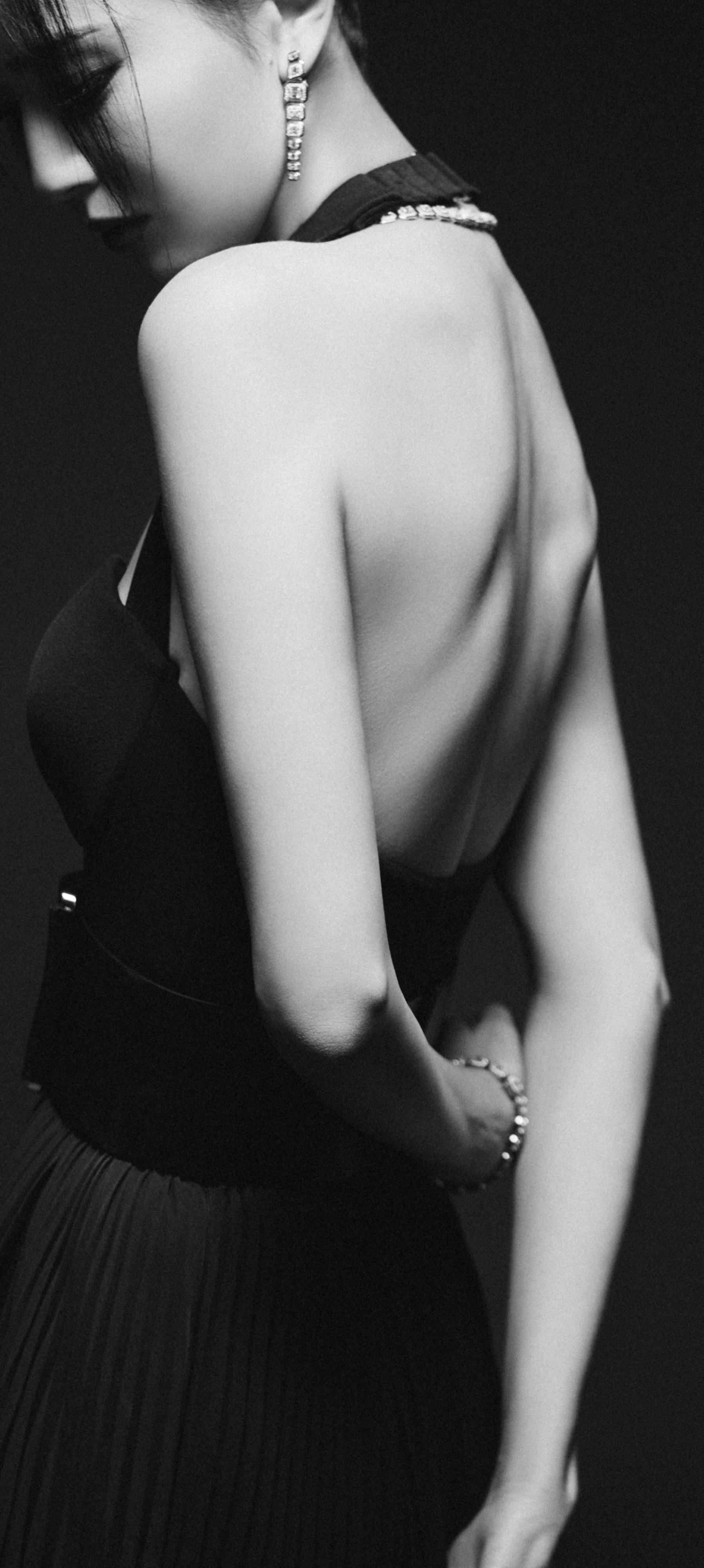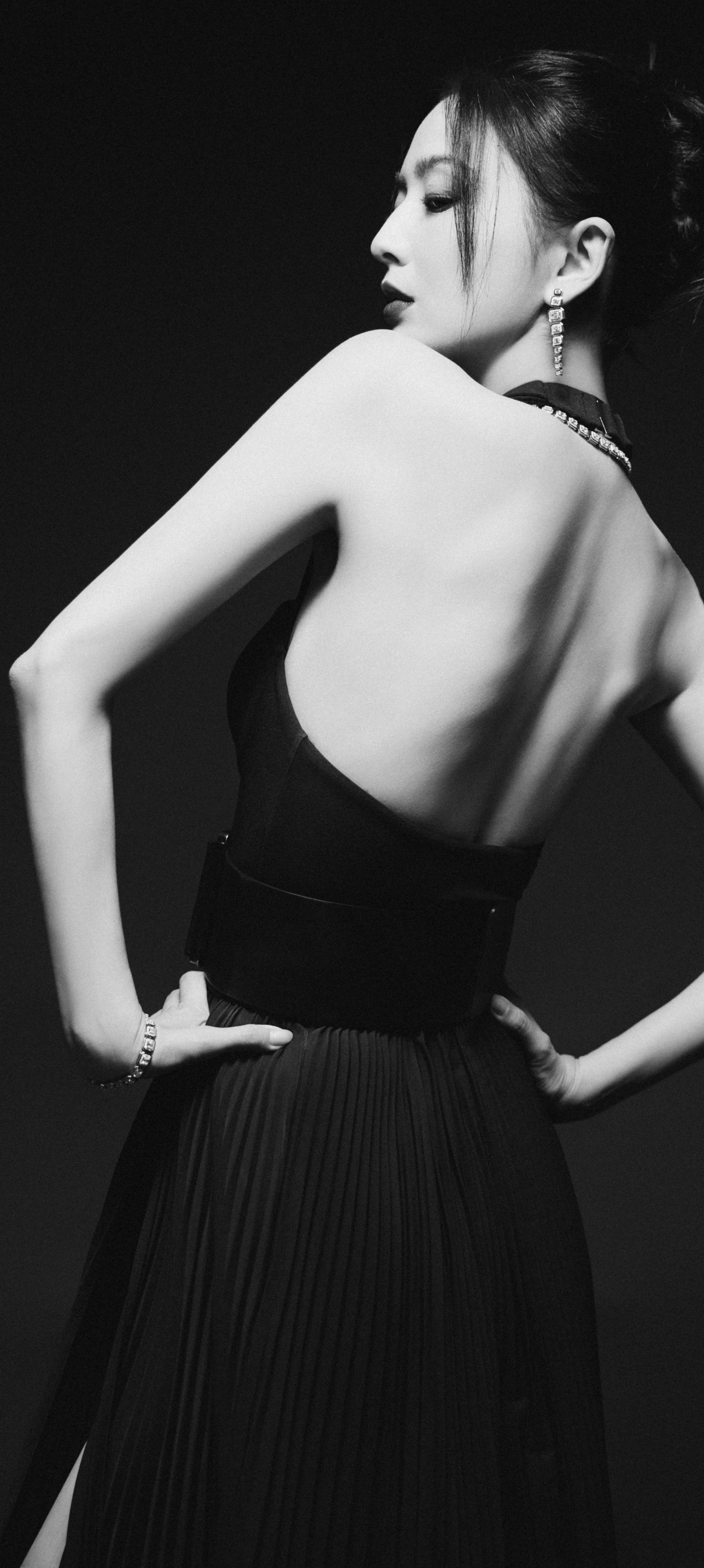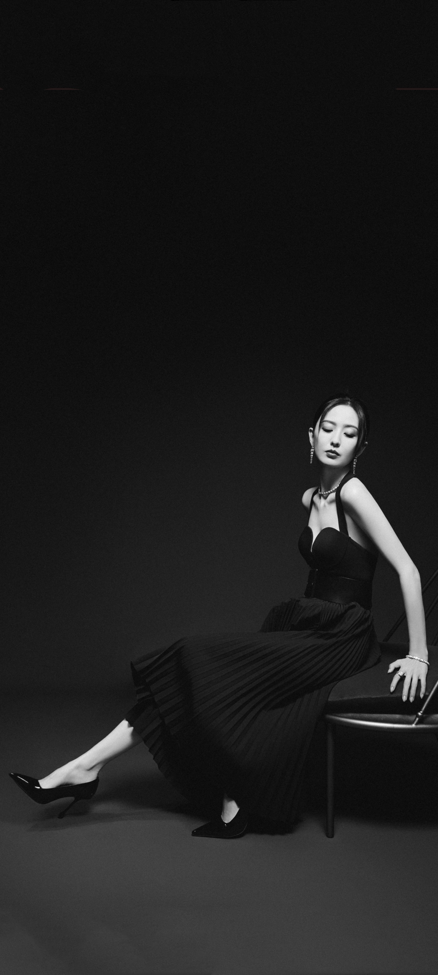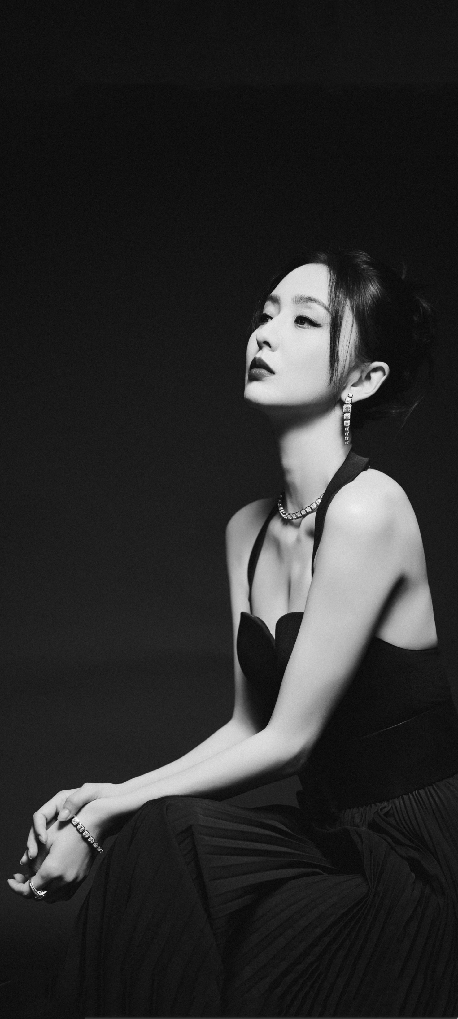 佟丽娅高清全屏壁纸:黑裙倩影光影为伴,热烈明艳。佟丽娅 时尚穿搭