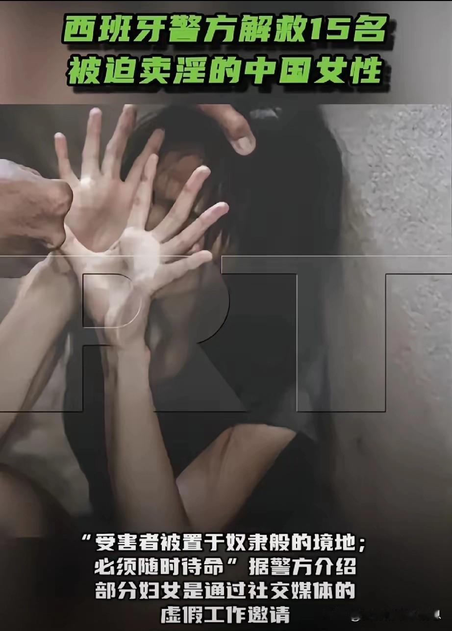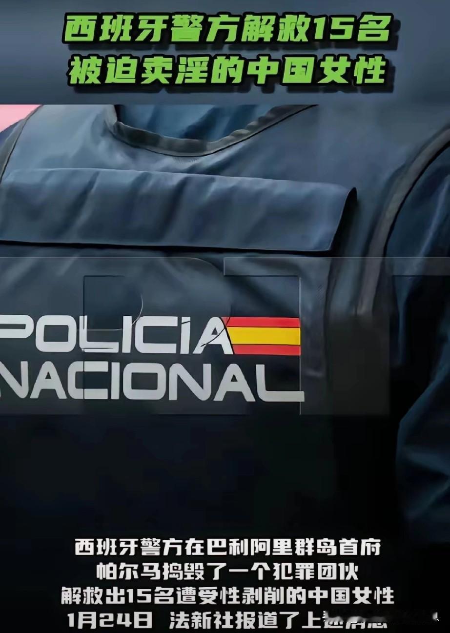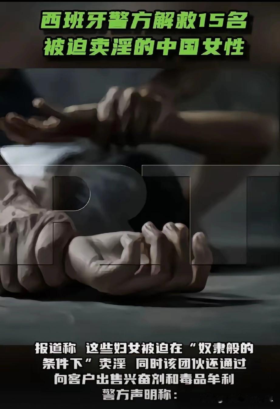 西班牙警方在巴利阿里群岛首府帕尔马捣毁一个犯罪团伙,解救15名被迫卖淫的东大女性。 这些女性生活在“奴隶般的条件下”,团伙还出售兴奋剂和毒品获利。 其中部分女性是通过社交媒体发送虚假工作邀请函来到西班牙的,承诺月薪约2000欧元。 此次行动共逮捕14人,除了1名西班牙人,其余均为东方大国公民。警方称,受害者被迫“每周7天、每天24小时工作,没有行动自由”。