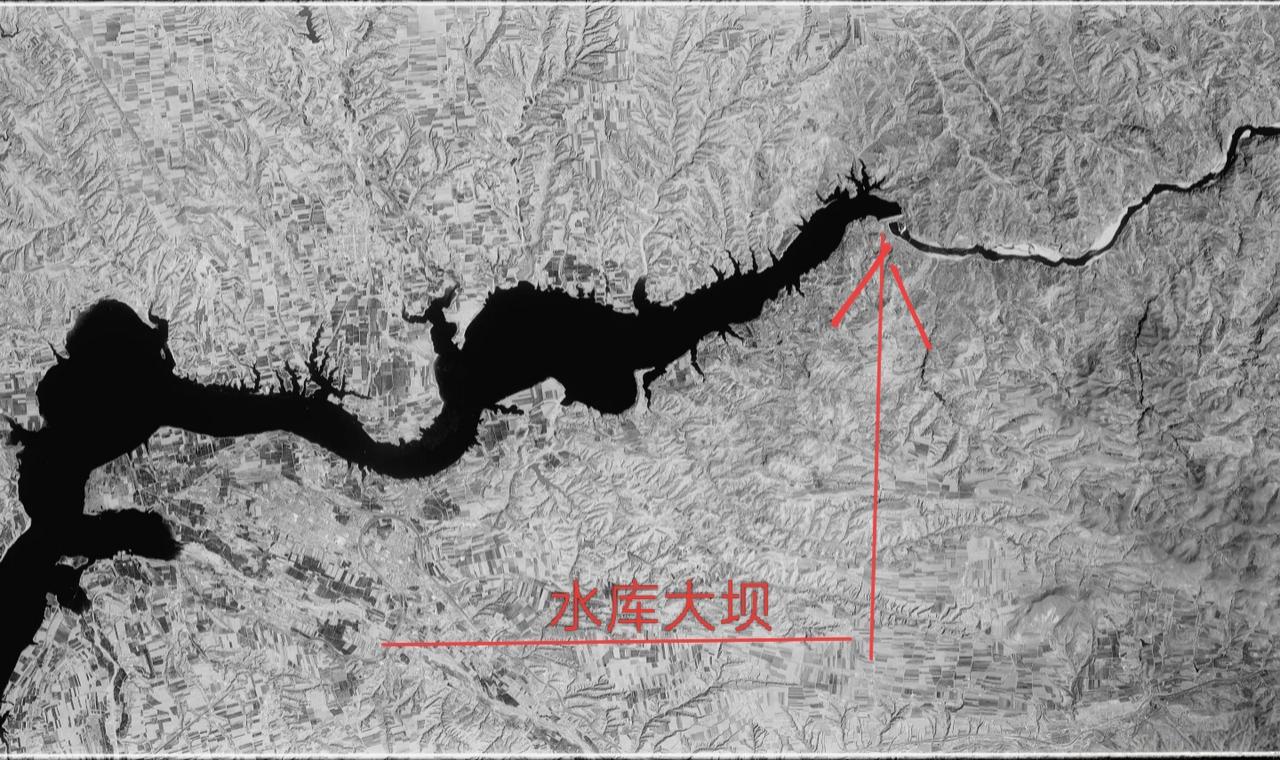 分享一张老照片吧上世纪七十年代末,美国高空侦察机拍摄的我国三门峡水库照片。