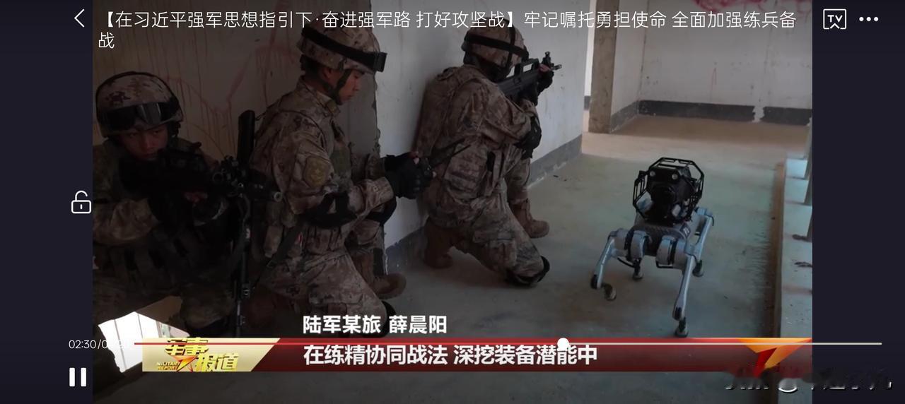 陆军“拐弯”枪首次出镜,有人无人协同作战,画面藏着太多秘密了…… 这应该是,陆军特战分队首次拐弯枪在公开报道中出现,画面里,拐弯枪清晰可见,这东西还是有用,不用探出头,就可以查看侧面的情况,这在特种作战中,用处还是很大的,能够减少士兵受伤! 画面中,还可以看到,这一次报道的是陆军某旅,有人无人协同作战,各型无人装备悉数登场,有无人排爆清障车,还有无人小车扛着191步枪,还有一款机器狗,机身写着P1的字样,背部扛着装备,看不出来是什么装置,看着非常的先进! 这个无人排爆清障车,体型真的不小,感觉和突击车大小差不多了,这应该算是重型无人装备了,还有那个机器狗,到底是干什么用的,应该更偏向于侦察,或者说是定向压制! 大家觉得呢?评论区说说你的看法!无人作战力量