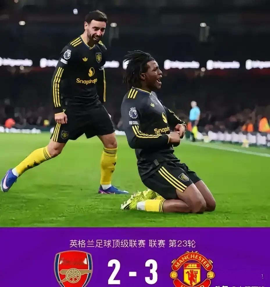 【阿森纳愿意等着曼城,曼联就是与众不同】穿上黑衣服就是有铁血了吗?都以为卡里克是个生手,赢了曼城只是一个意外,没想到在阿森纳主场,他们那套蛮不讲理,又一次奏效。 难道阿尔特塔也讲咱们这一套人情世故吗?英超第23轮,阿森纳主场2-3遭曼联逆转绝杀,赛季主场首败、各项赛事12场不败终结,仍以4分领跑。曼联两连胜升至第4,而阿森纳原本可以拉大积分差距。 29' 厄德高传中,廷伯逼抢致利马自摆乌龙,阿森纳1-0。37' 苏维门迪回传失误,姆贝莫单刀扳平,1-1。阿森纳运气不错,曼联总是倔强的。 50' B费助攻,多尔古远射世界波,曼联2-1反超。84' 阿森纳角球混战,梅里诺补射扳平,2-2。87' 梅努助攻,库尼亚内切兜射死角绝杀,曼联3-2。 阿森纳主场16场不败、联赛7轮不败均告破,领先曼城4分仍领跑。他们的角球战术仍旧是有效的,喜欢抓对手的小辫子也是真的。可是曼联刚打了鸡血呀!昔日助理教练大概也在等着,瓜迪奥拉可不要泄气哦! 卡里克上任连斩曼城、阿森纳,这也是一个传统了,或许还能持续好久,到了赛季末也未必。积38分重返前四,又一次可以试探一个新的高度。 冬日生活打卡季 记录我的2026