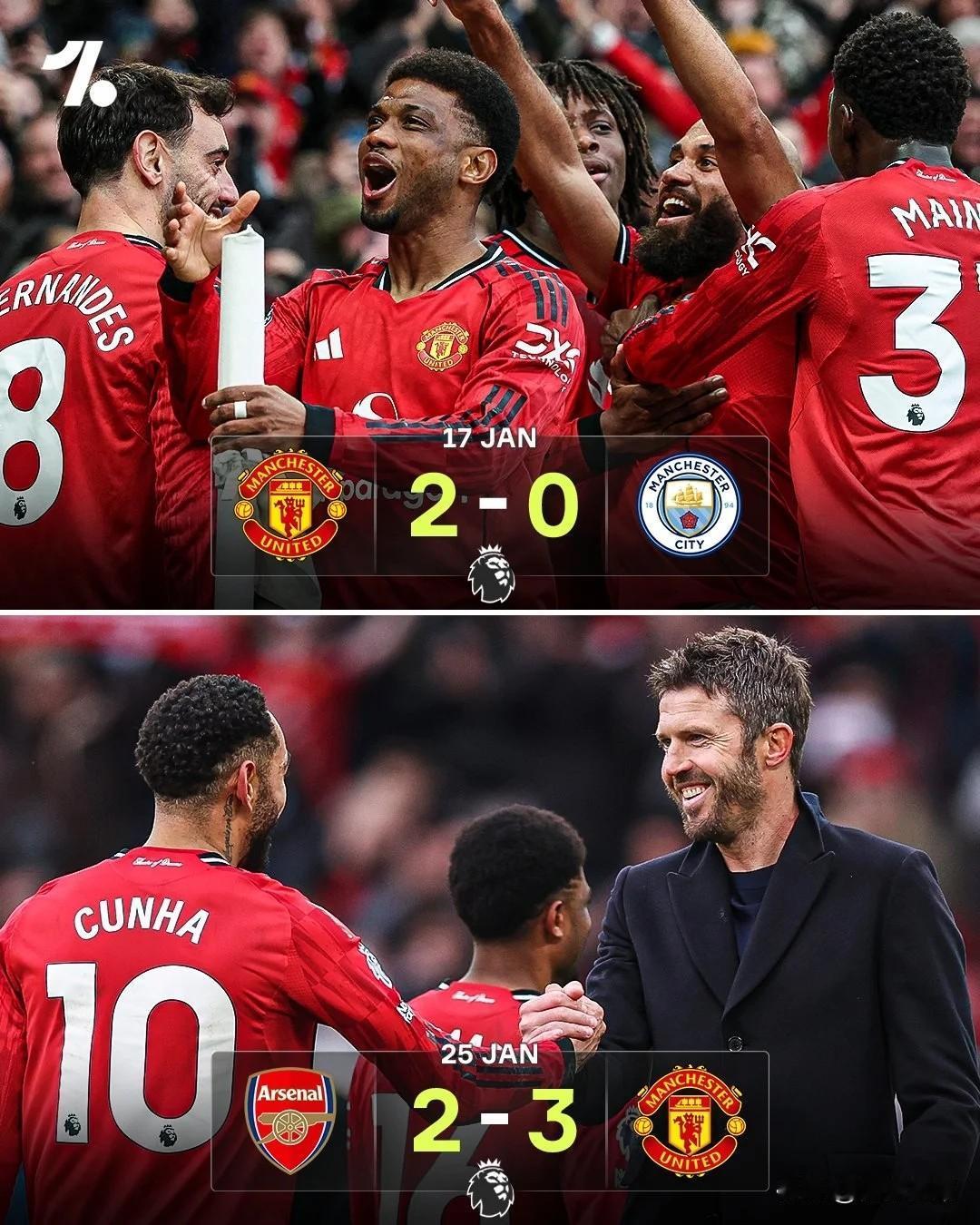 英超乱不乱,红魔说了算,曼联成为了英超冠军的判官! 上周曼联2-0战胜曼城的时候,让阿森纳球迷狂呼“要过年了”,英超提前大结局了,阿森纳要提前夺冠了,纷纷感谢曼联老铁。 万万没想到今天却变成了曼城球迷感谢曼联了,曼联在阿森纳主场3-2战胜了阿森纳,让曼城与阿森纳的积分差距变成了4分,英超冠军的悬念又回来了。 在阿莫林下课的时候,没人会想到曼联能连续斩杀积分榜前二的阿森纳和曼城,但是现在竟然神奇的做到了,只能说曼联终于找到了自己的救世主教练了,卡里克才是曼联的真命天子。