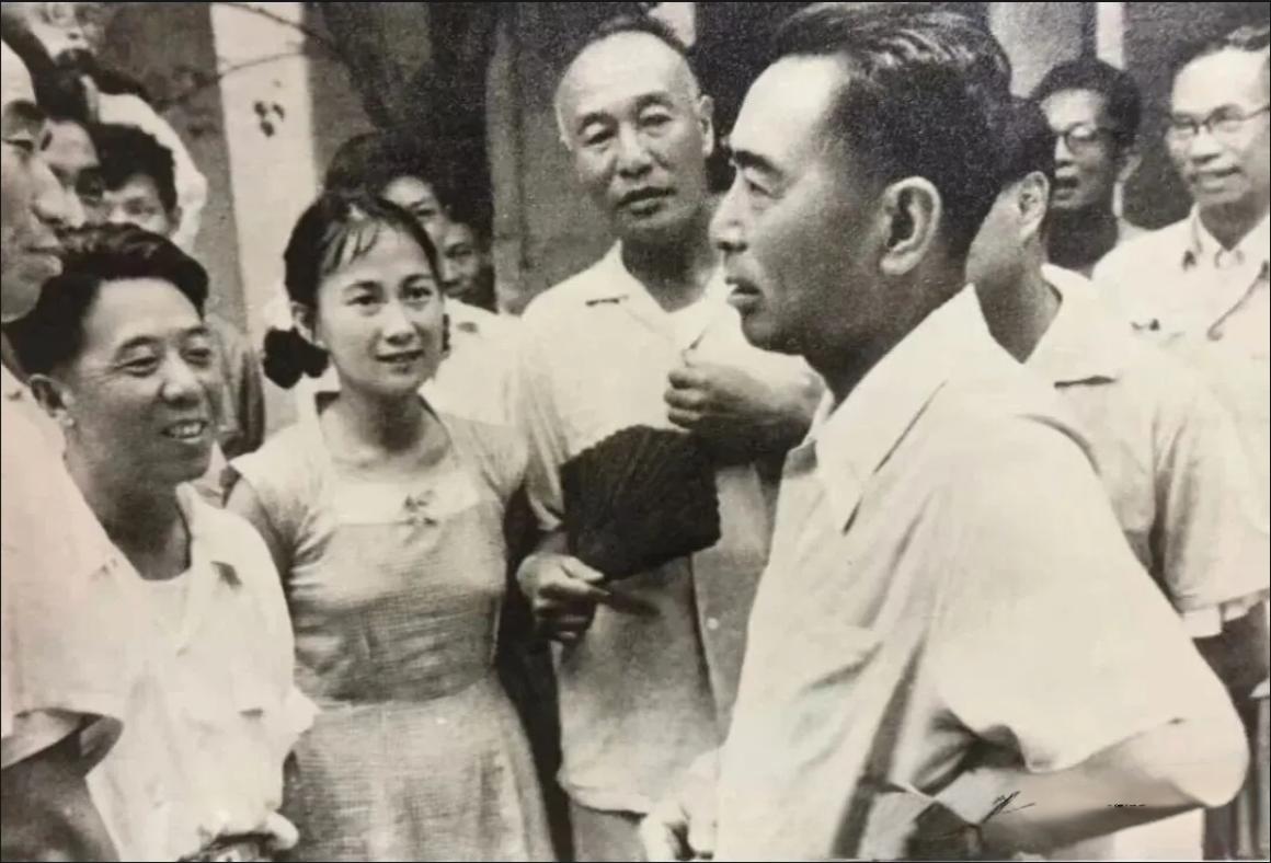 敬爱的周总理与文艺工作者亲切交谈。这位女演员叫什么来着,她主演的“我们村里的年轻人”在山西省洪洞县拍摄的外景。这个电影我看了有10 遍之多!